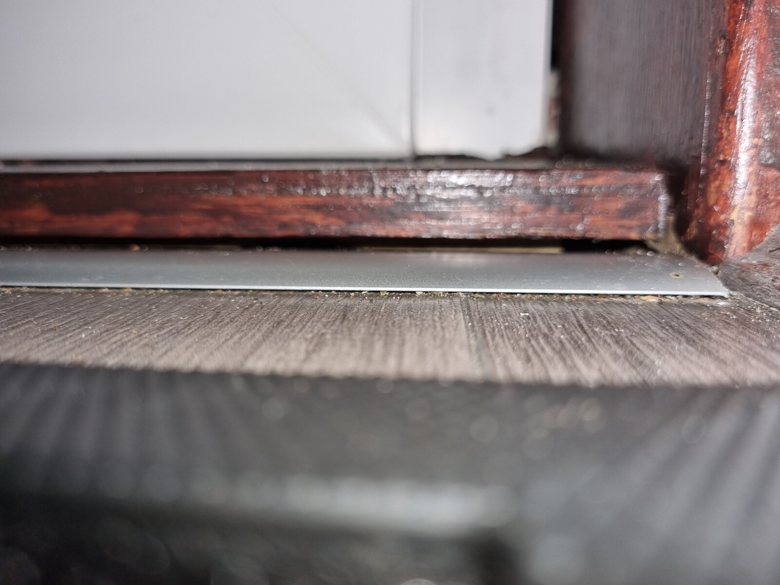 The wood above is under my uPVC front door, there is a reasonable gap to the floor. I don't know what is under/behind this but there is quite a bad draught getting in through it.