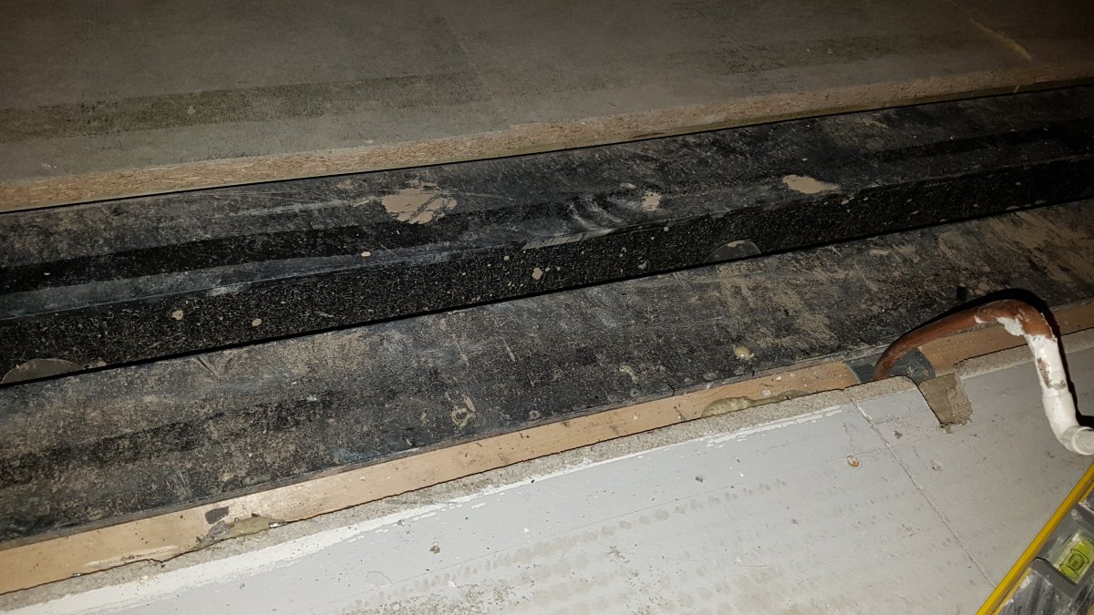 the flooring used on both sides is 22mm chipboard but the rsj isn't level... so one side the rsj is 6mm up from the top level of the rsj leaving 16mm to make the floor level whereas the other side is only 2mm up leaving 20mm to the top of the rsj.... to make matters worse the 20mm side is actually 5mm lower overall.