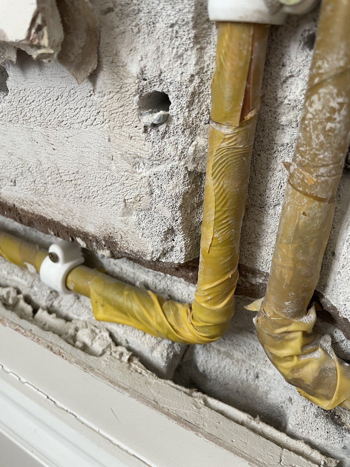 On another thread, someone kindly suggested that this yellow tape on my central heating pipes was simply pvc tape