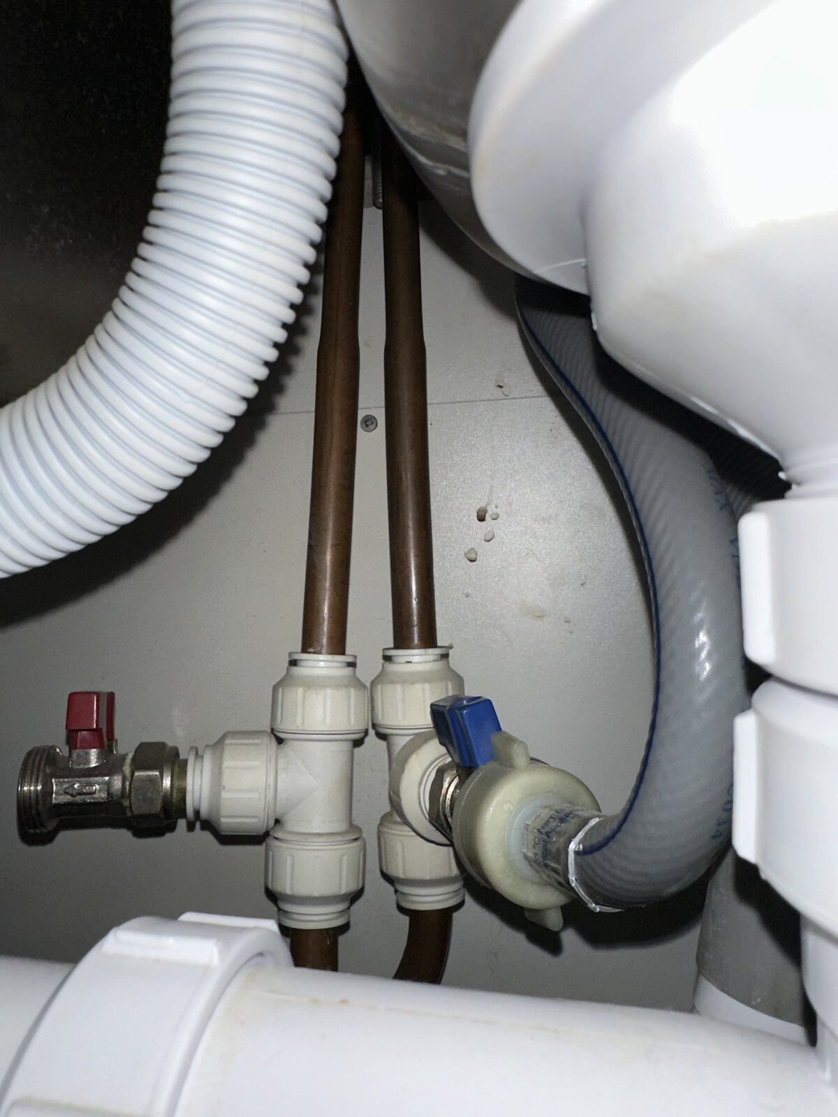 The flexi pipes that came with the tap are 300mm, which is too long for my setup. I’m considering getting 150mm flexi pipes instead. This would allow me to install isolation valves just above the Tee connections and then attach the shorter flexi pipes.