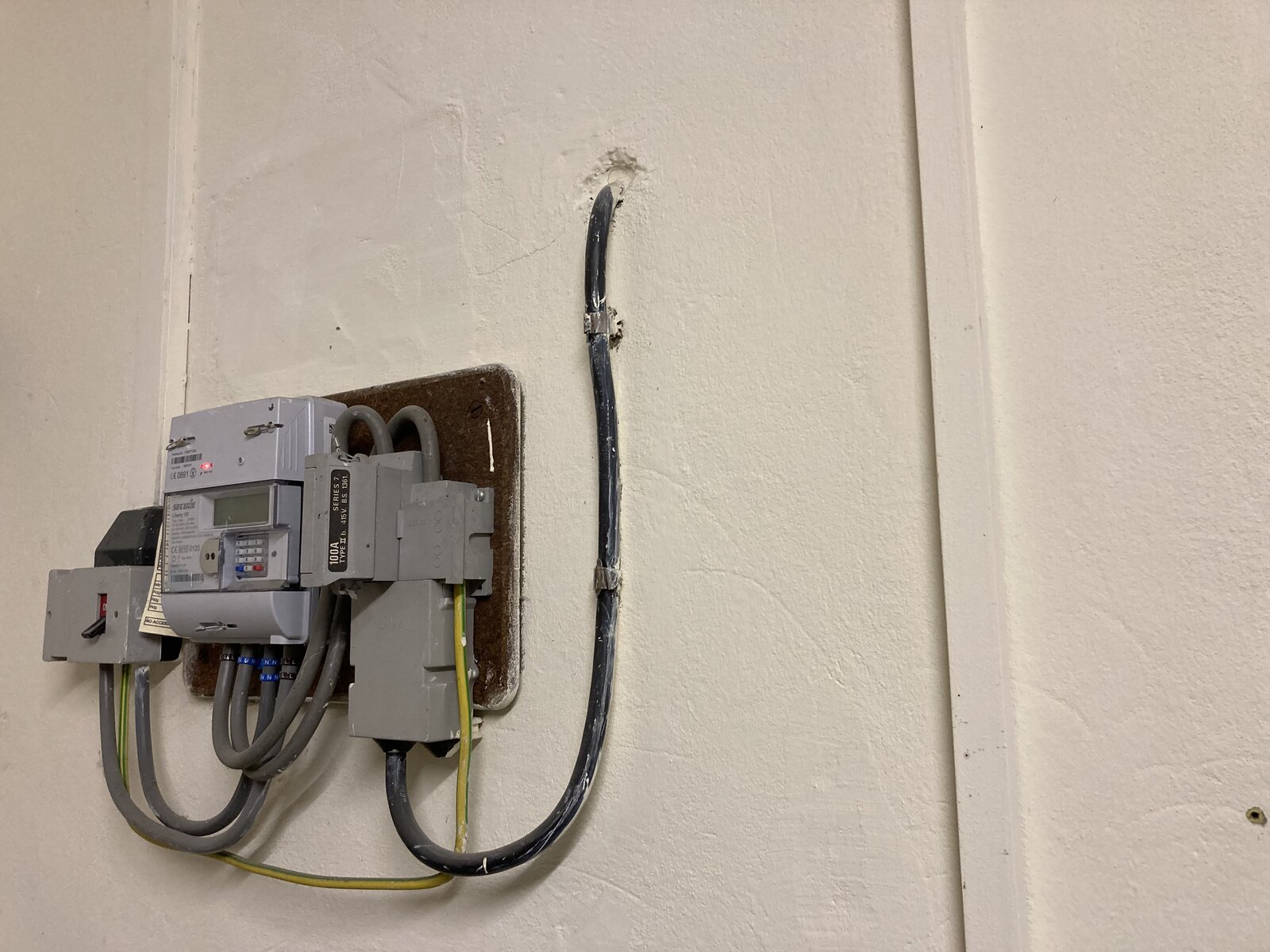 Yep, you've added extra weight to my concern the location of the black supply cable wouldn't be obvious - the consequences sound pretty severe. I'd love to shrink the cupboard down as it is going to be right in eyesight as you enter the bedroom. I'd happily pay an electrician to reposition the meter to be right and above where the black cable enters the room so it can be shortened, but from the sound of it that's not going to be easily done.
