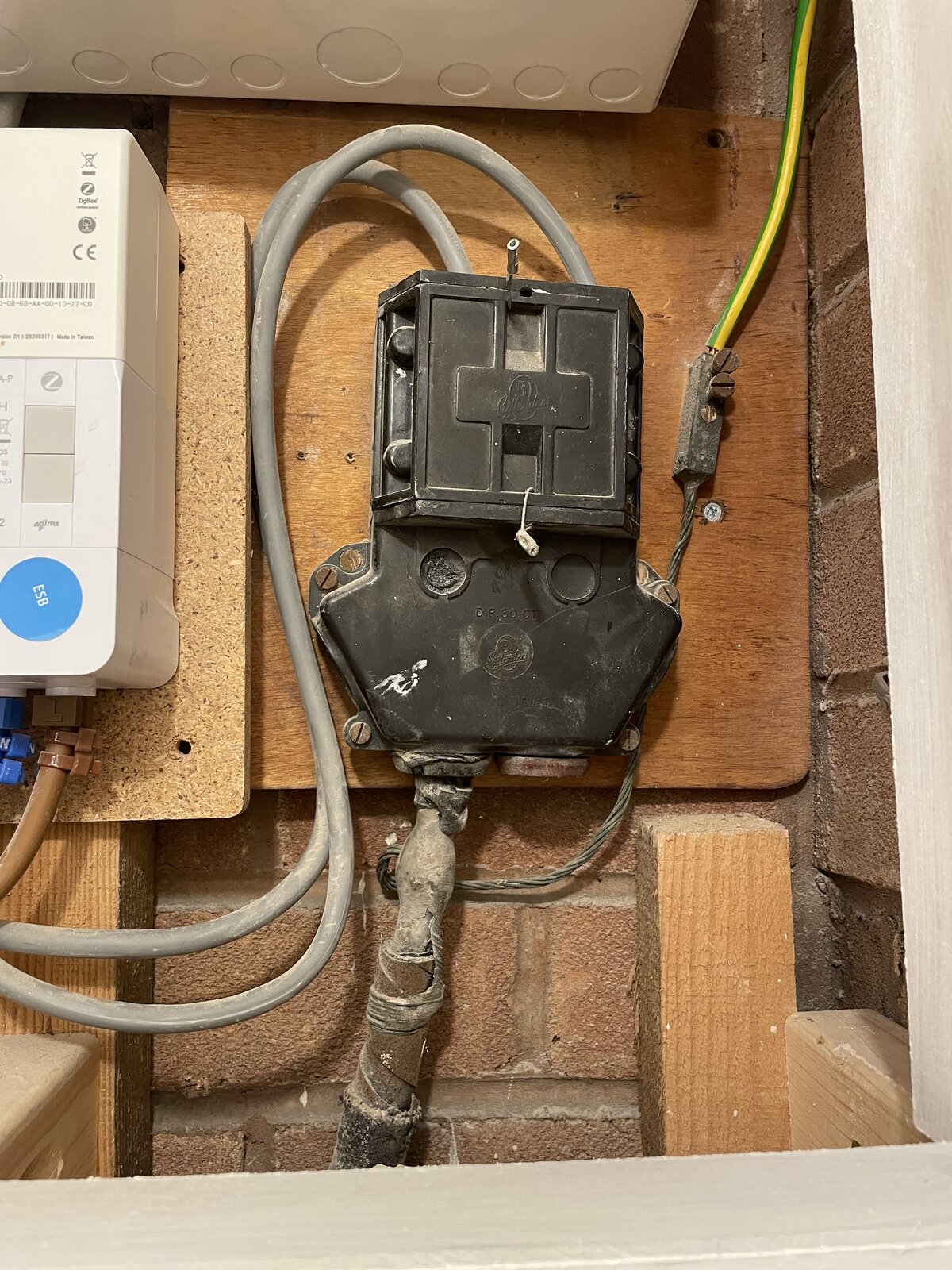 Please take a look at the picture attached. This is the rubber grommet plugging the hole where electric cable is to be fed to the shed.