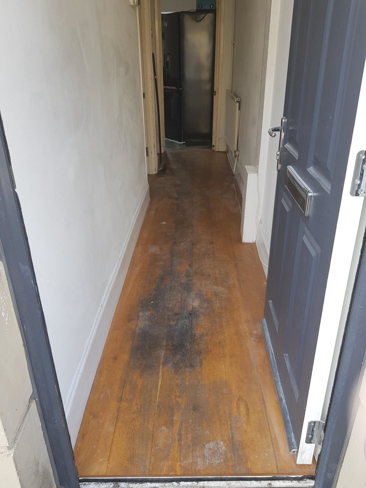 As you can see from the photos, the entrance is looking quite worn and black in places, will I be able to sand this out or is it likely very deep?