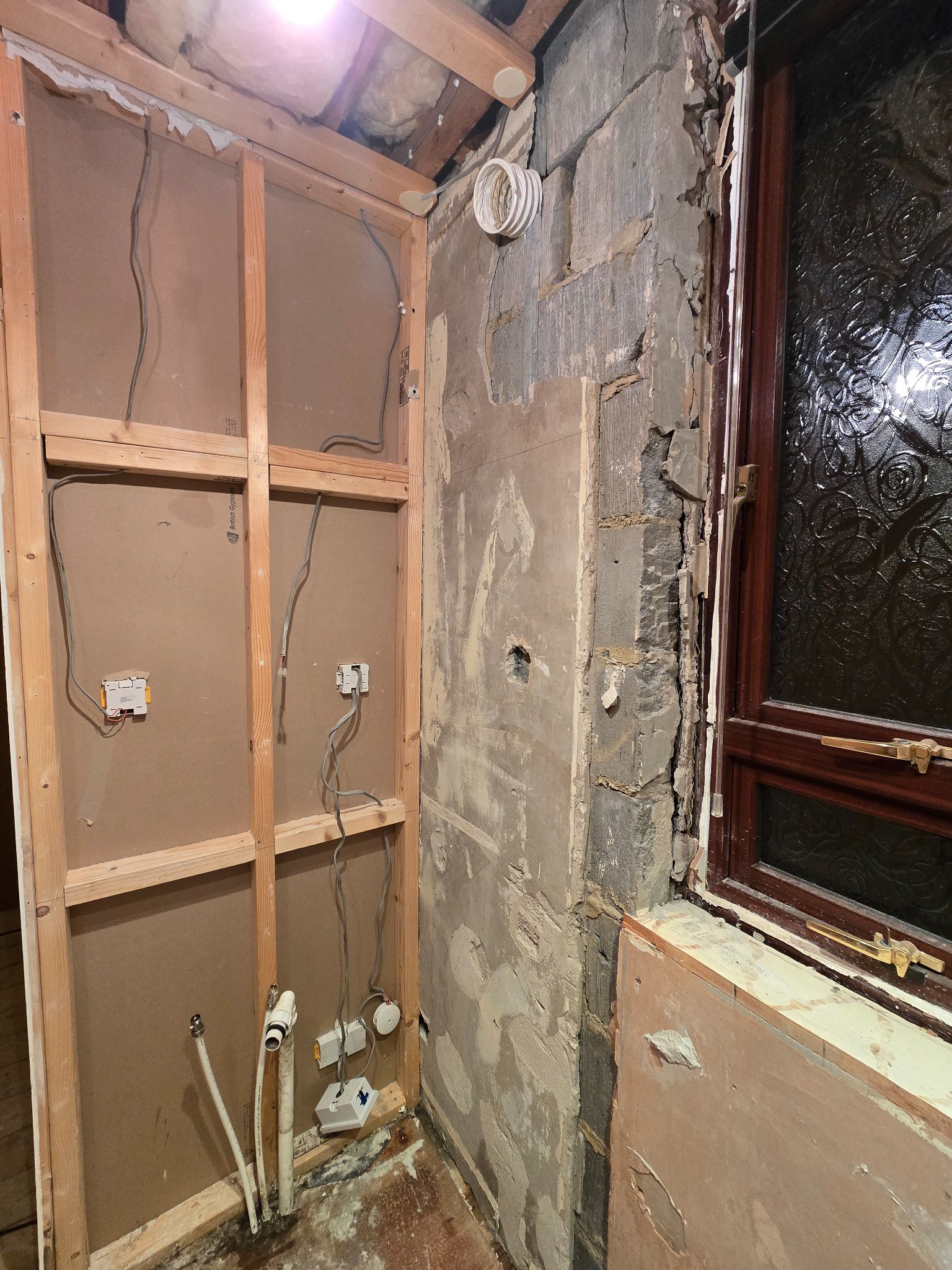 Renovating my house and have removed the tiles including most of the plasterboard. Wondering what the best way is to prep these walls for plaster boarding and tiling.