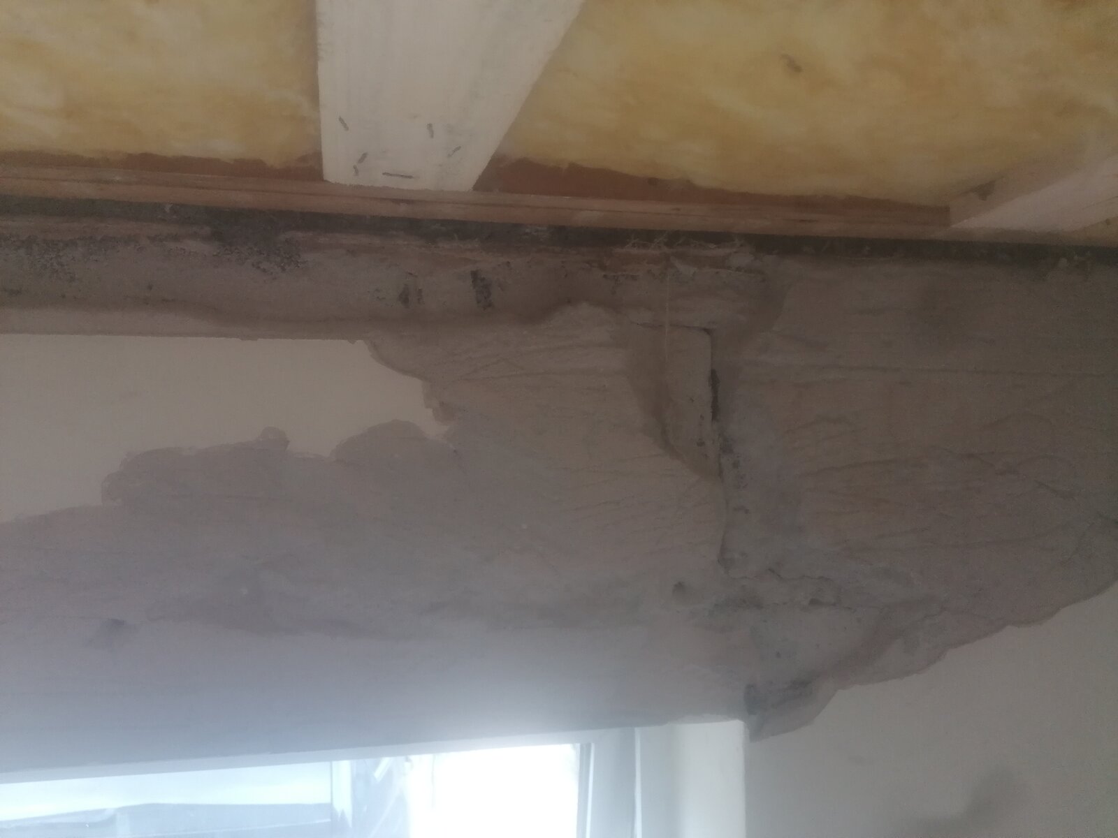 Above the window is the worst area, the grey stuff under the finished plaster is quite loose in places and it's about an inch deep back to block, am I best just knocking all the loose stuff off and a plasterer will be able to make good or am I best knocking it all off to bare block?