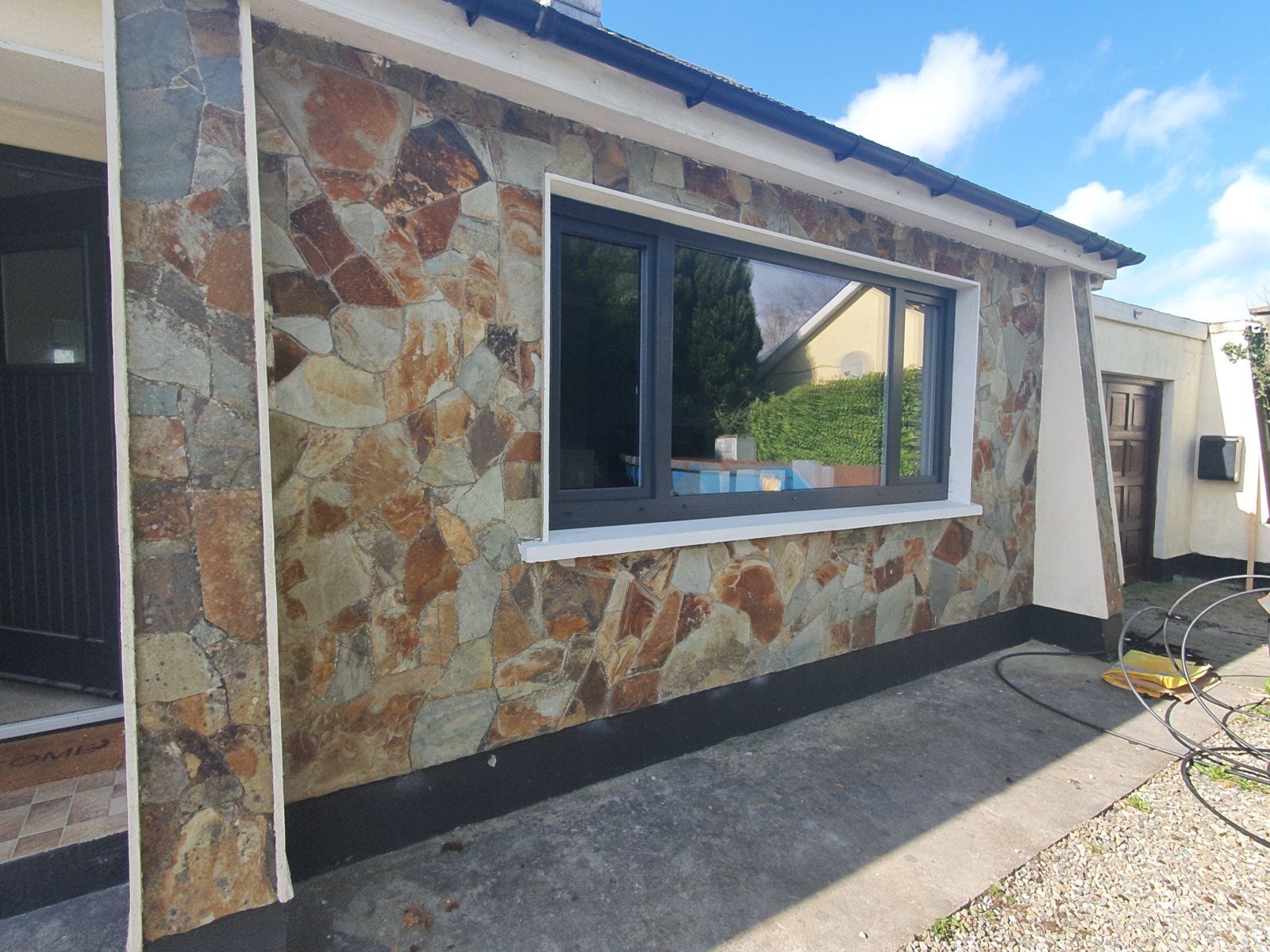 I got my house in December and it has this awful stone facade veneer on one section I hate it with a passion what would be the best way to deal with it. I was thinking timber cladding