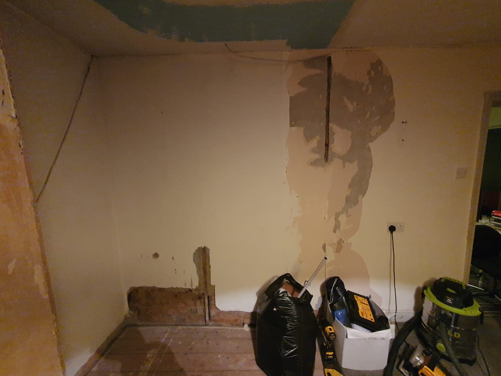 Any advice on the best way to repair this section of wall. There is a crumbly grey base layer under the original skimmed surface, does this whole section need to go back to brick? I am a complete plaster novice so any help would be appreciated. This wall is eventually going behind a wardrobe so the finish doesn't have to look great.