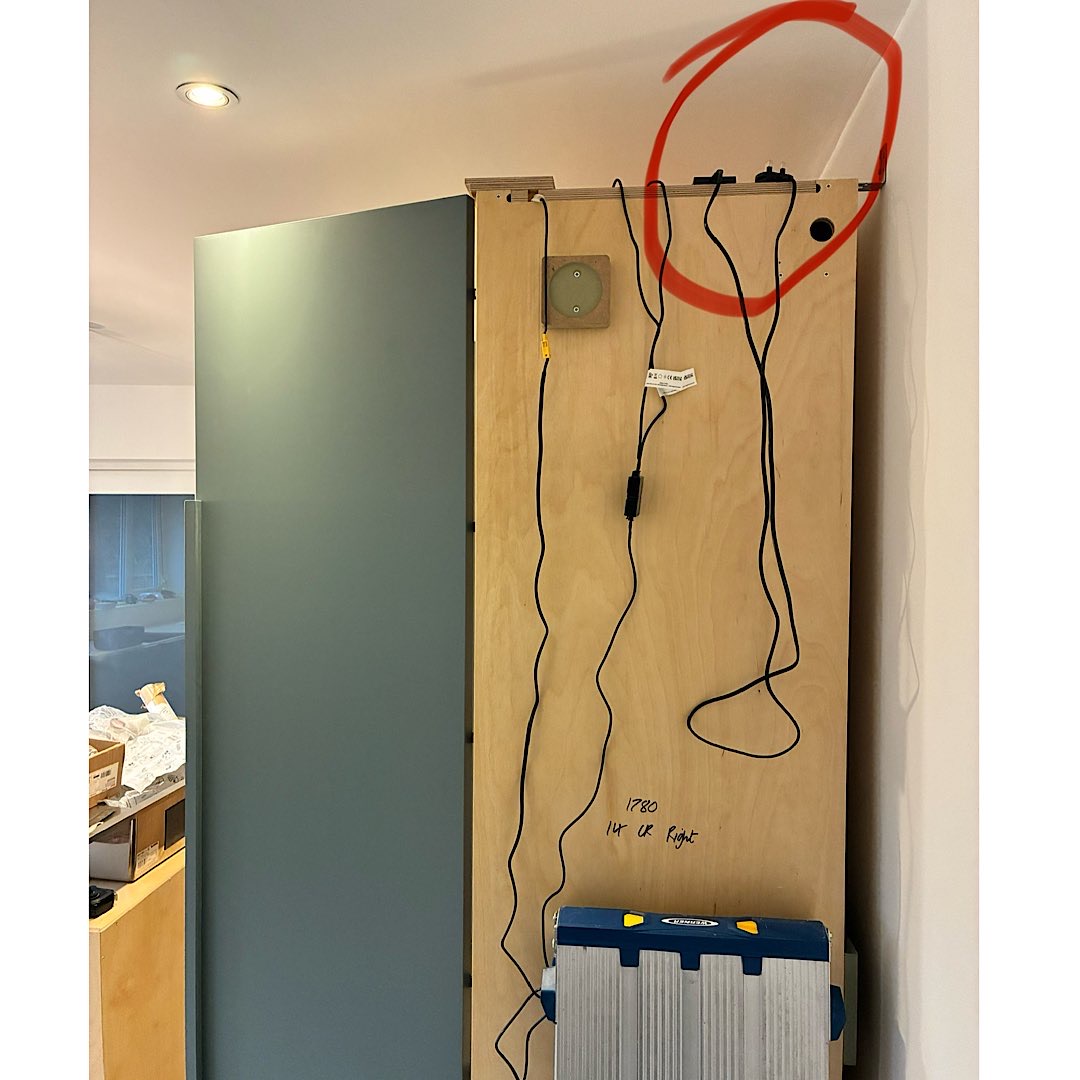 I have the supply side of things sorted- it is just where to mount the socket. I am guessing a surface mounted box somewhere high on the wall behind the cabinets to plug it in? Can the cable then just fall behind the unit if I have a side entry back box?