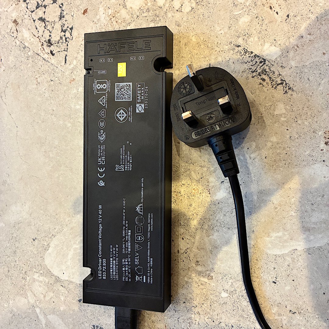 This solution just seems a bit untidy hence why I thought I'd ask if there's a better way. The only other option I can think of is hardwiring but is that possible with a 12v adapter? The hole on the side where I have circled is the cable entry point for the driver which will then sit inside a very small cabinet in the top corner. I can't really install a socket outlet there as the cabinet back is only 6mm ply.