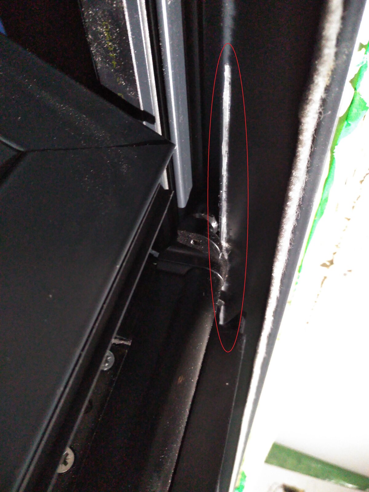 As can be seen in the two additional pictures, it's scratching/catching the top edge of the frame.
