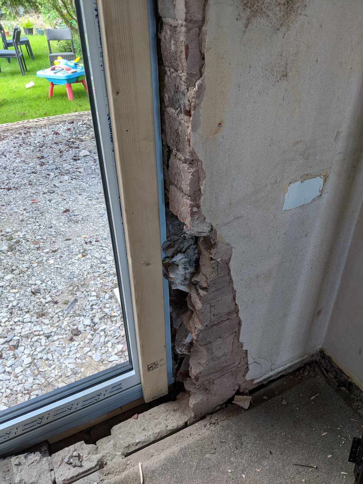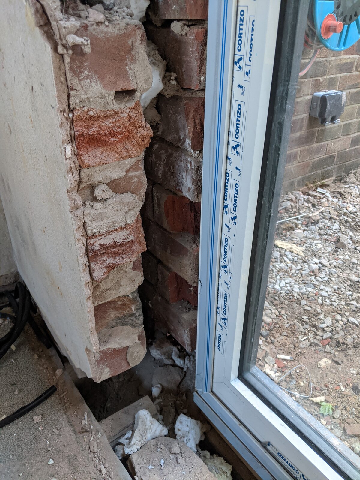 The boss chap has just been. He's a actually a nice fella and i think he realised the entire thing was a bodge....obviously wouldnt admit to it but I could tell by the look on his face. He has said "we'll get it right for you". This is where I'd be grateful for some advice from those with more knowledge on what a correct installation looks like as I'm not sure what his version of "get it right" means. I've attached some pics of the internals and where the bifold is sat on the cavity and the hacked brickwork. I'll be asking to position bifold correctly on cavity, correct half bricks along base and remove timber, neaten brickwork internally and externally, apply the beads neater and square to frame...any other glaring issues apart from getting the things to actually work! Thanks all