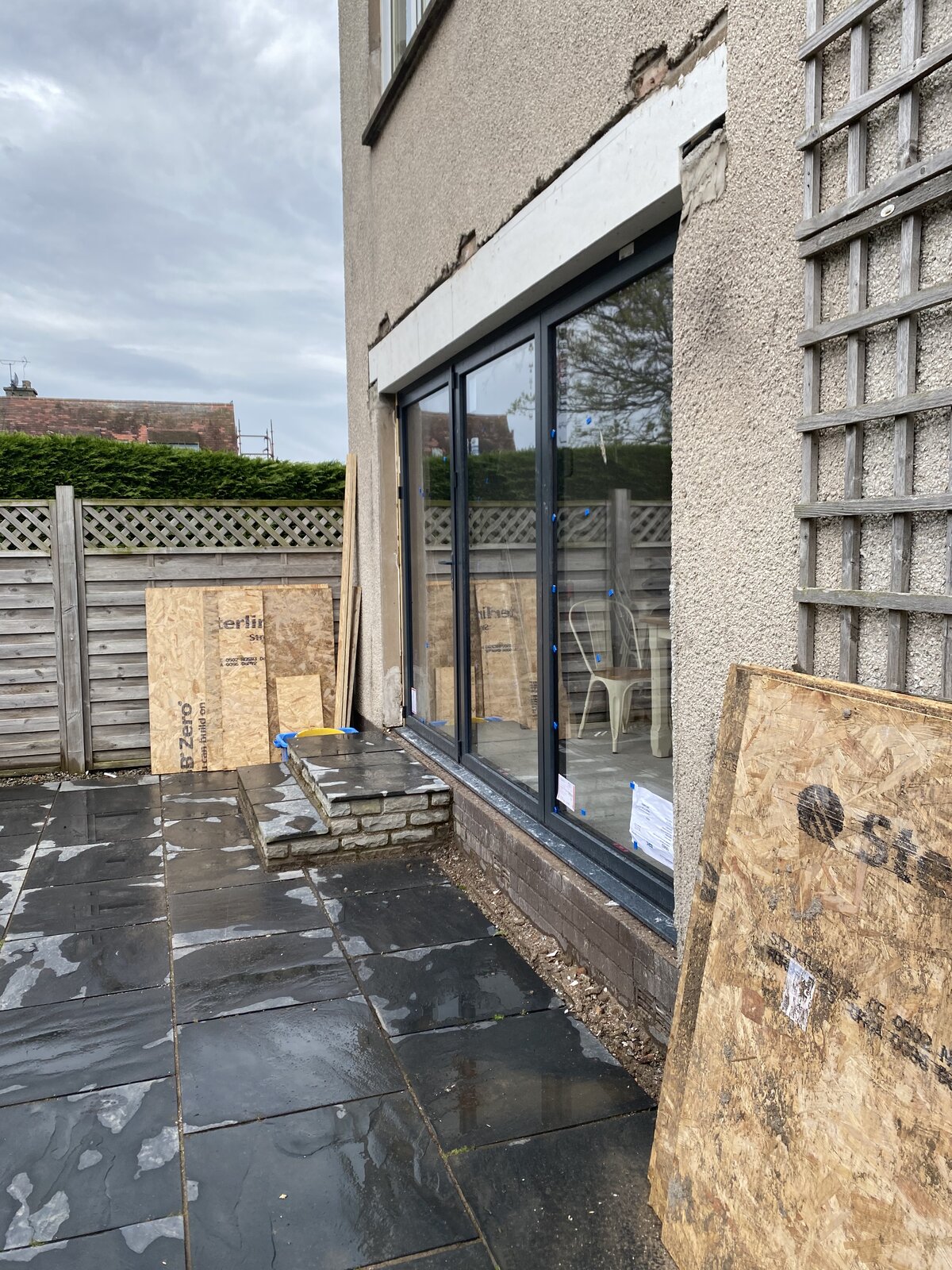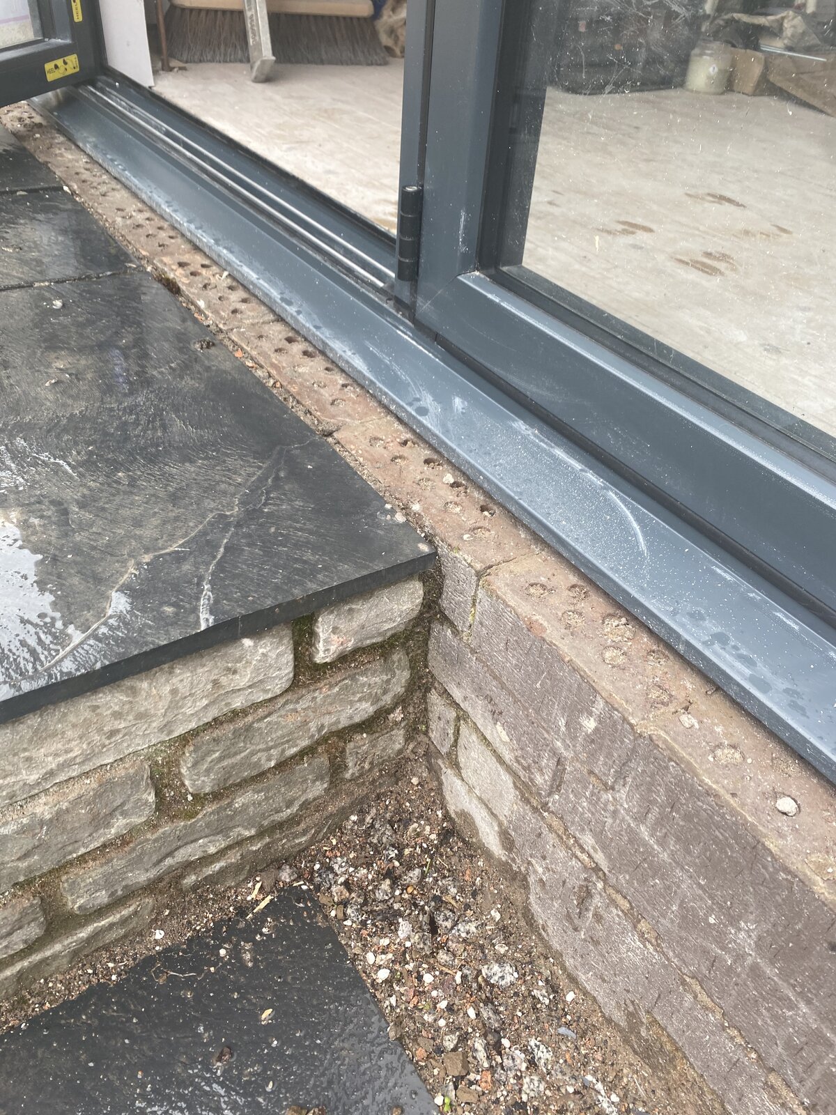 Hi - We’ve recently had the wall knocked down, steel installed and bifolds. I spoke with the joiner regarding the fitting of the bifolds and he said that whoever does the patio would just cut away this outer layer of bricks and build the patio up to the doors? I’ve attached the photos, is this something that should/could be done. Thanks