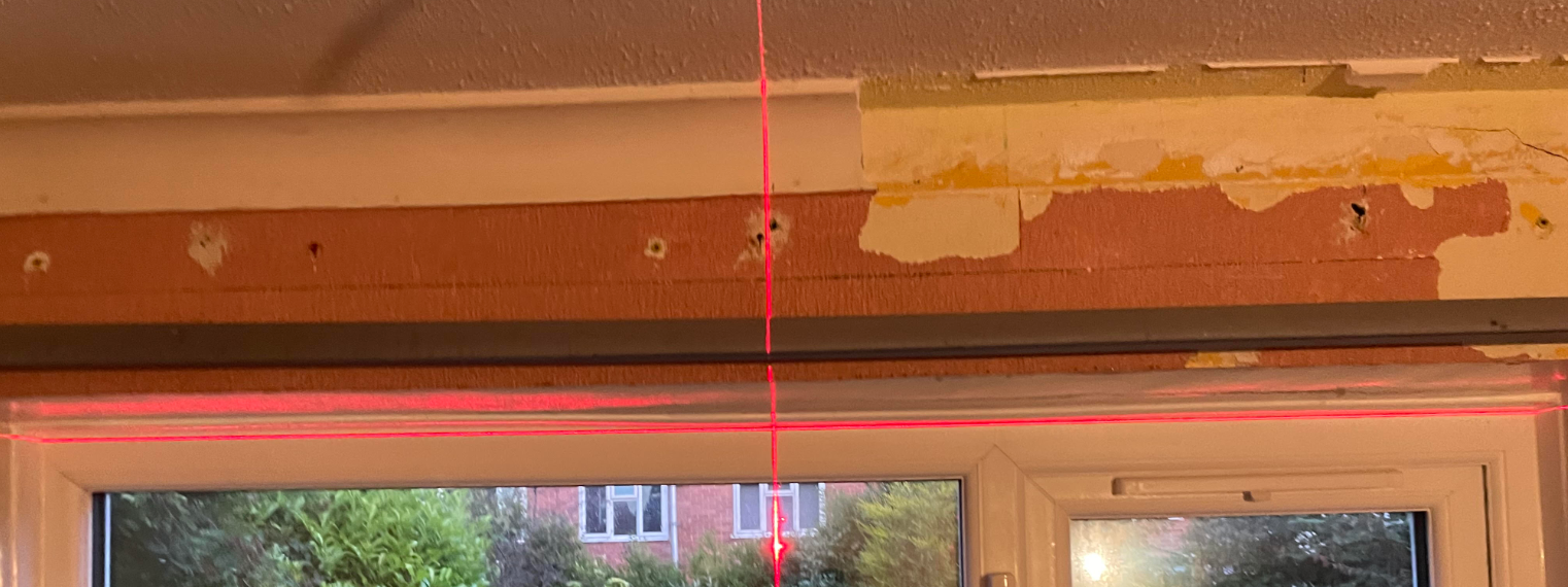 Can't see any obvious cracks outside or nearby inside. Trying to figure out if its the brickwork sagging down externally causing slope + eventual crack or what other causes, and potential remedies - ideally one I can DIY.