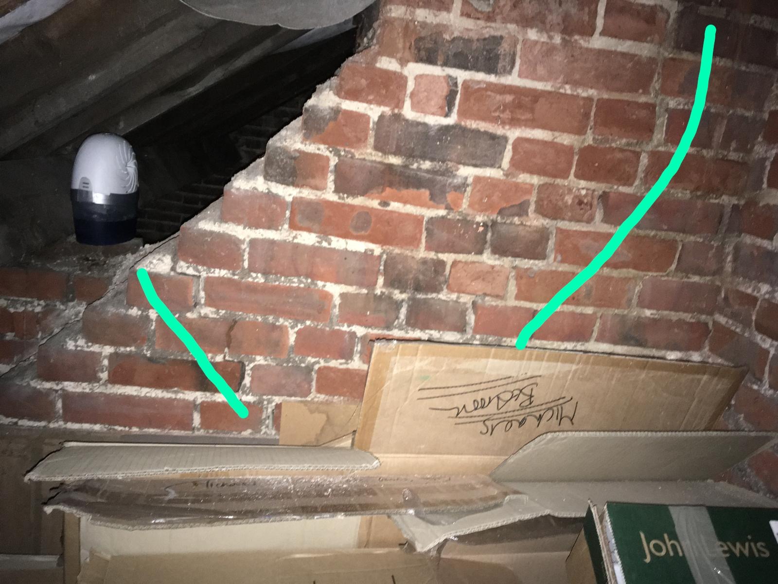 All remained the same until about a month ago when I noticed a crack in first floor wall in a new place above stairwell. I went up to the loft yesterday to check it and saw what looks like a pretty big crack in the party wall with neighbors loft (see image) a little further down the loft an old chimney breast that remains in the loft has also cracked in 2 places.