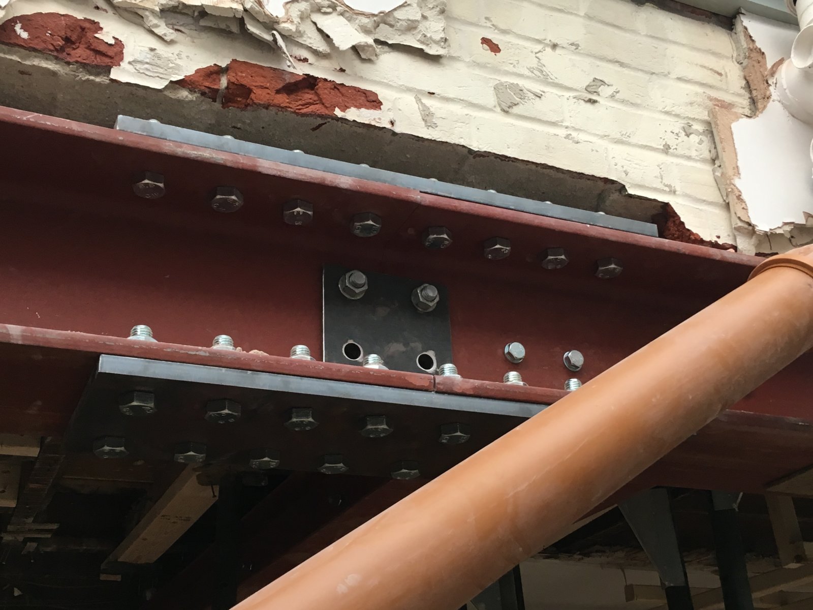 Couldn't tell from the pics- are the crossbeams set in the party wall or is there a big lump of C bolted to the wall & beams set on it? Not critical to be honest but be aware that the party wall will be taking load from those crossbeams