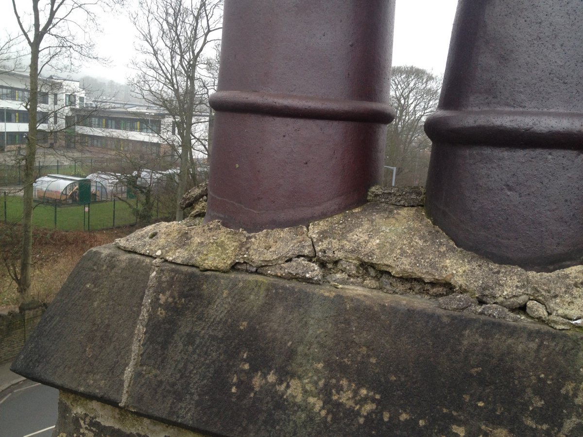 There are 6 big pots which are open on the tops. So i am planning on going up and taking these pots down and replacing with the small gas terminals and renewing the haunching.