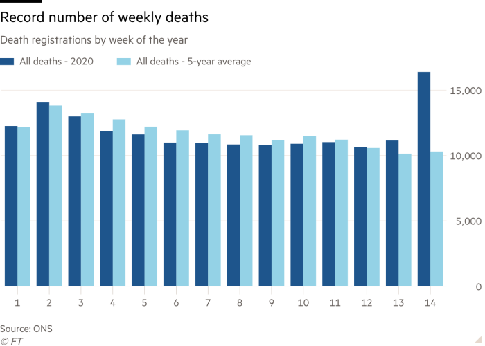 "Even the ONS figure of 16,387 deaths for the week ending April 3 will underestimate the total that occurred in the seven-day period. This is because the ONS has subsequently received reports of another 2,112 deaths mentioning coronavirus that occurred before that date, and which were registered later. The ONS figures confirm that the Covid-19 outbreak is significantly worse than any flu epidemic Britain has suffered in recent years. Comparable estimates started 15 years ago. Nick Stripe, head of life events at the ONS, said: “The 16,387 deaths that were registered in England and Wales during the week ending 3 April is the highest weekly total since we started compiling weekly deaths data in 2005.”