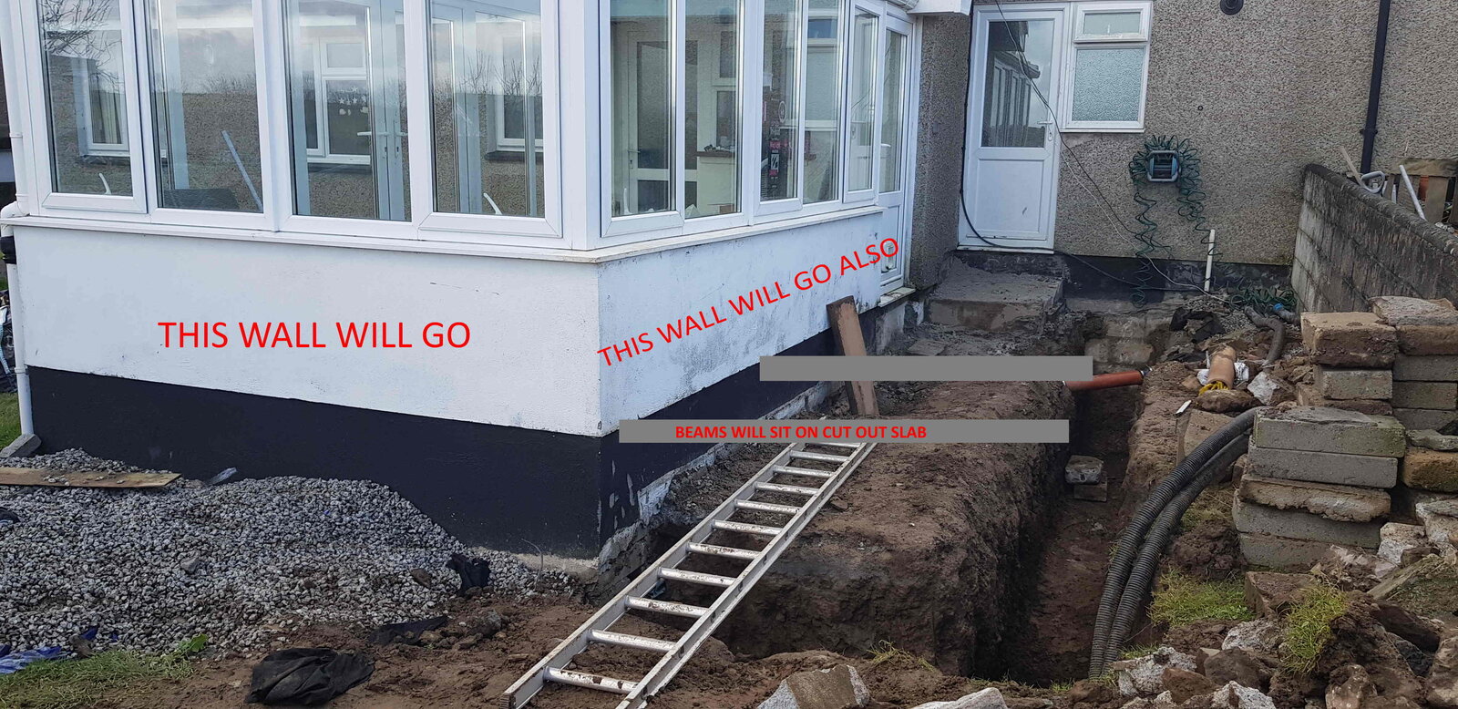 Currently digging out in preparation for putting footings in, and I was wondering if anyone could offer me some advice on how I could\would bind the block and beam extension to a current\existing slab?