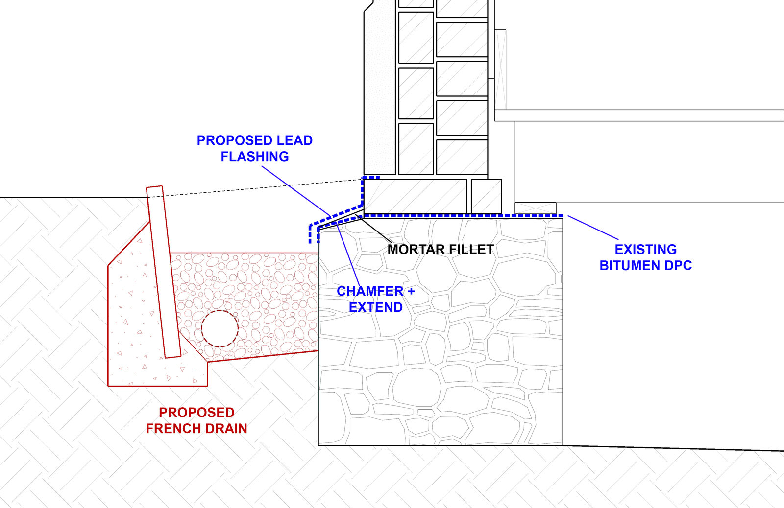 - The footing was in a poor state when uncovered, with significant portions of pointing missing so I patched it up rather messily with NHL 3.5 at the time not thinking it would remain visible.