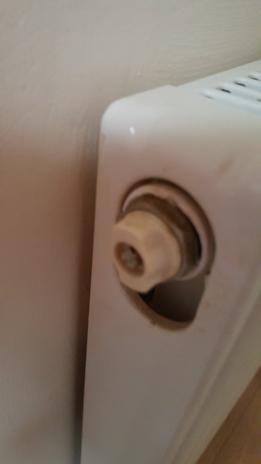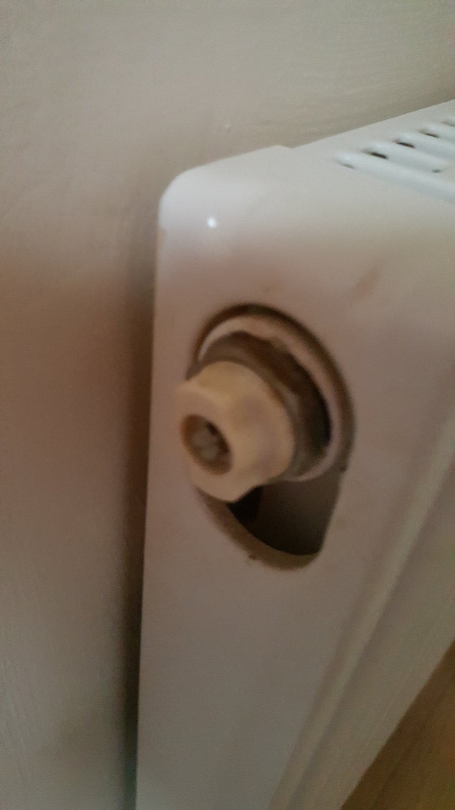 Two years ago we had our Radiators changed. I have now tried to Bleed the system for the first time but find that the brass nut (?) behind the white plastic is also turning as I turn the bleed key. In short the whole fitting is moving. As I have not seen these kind of fittings before, does anyone know if this is correct?