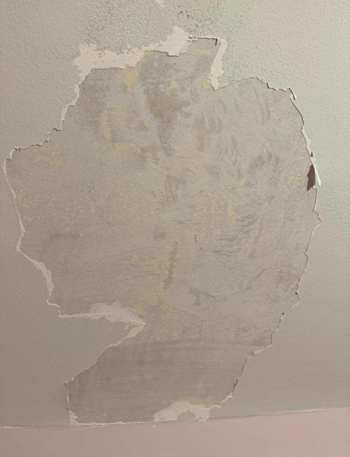 Then there is likely to be distemper on the ceilings and probably the walls. It can be washed off with very hot water but the glue will not dissolve in cold. It has a distinctive unpleasant smell that you will recognise if you use hot water.