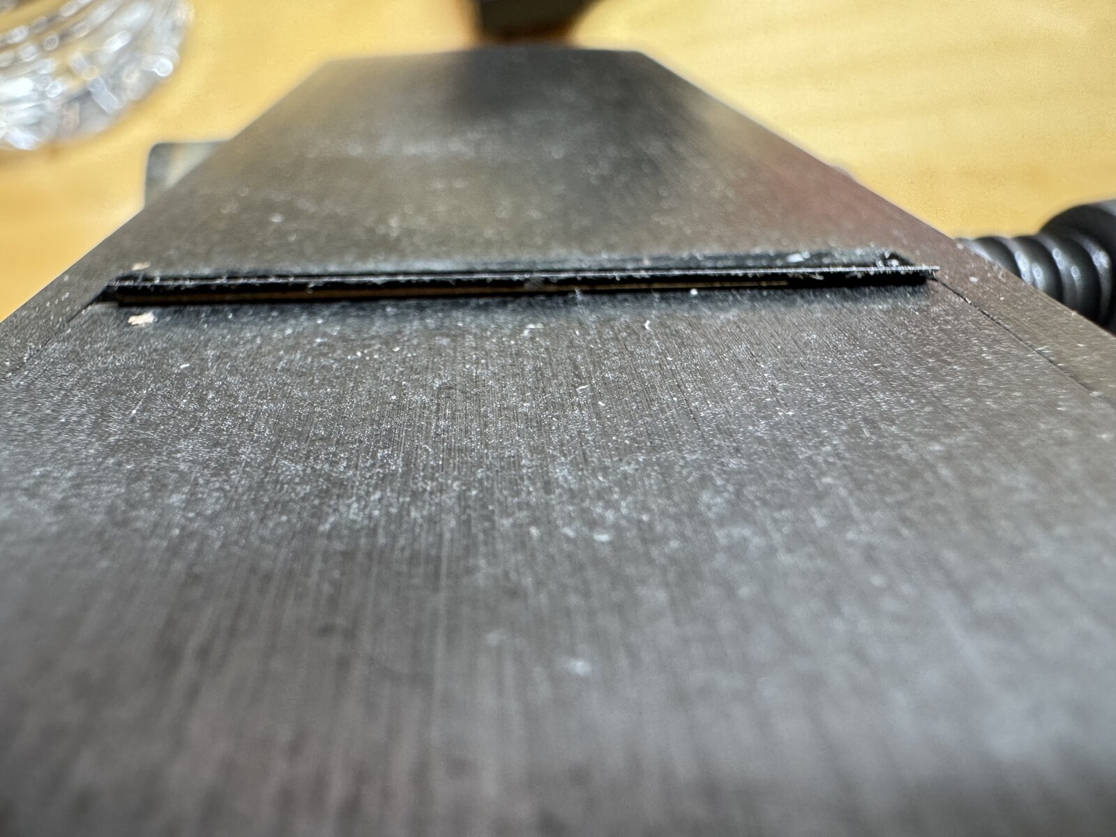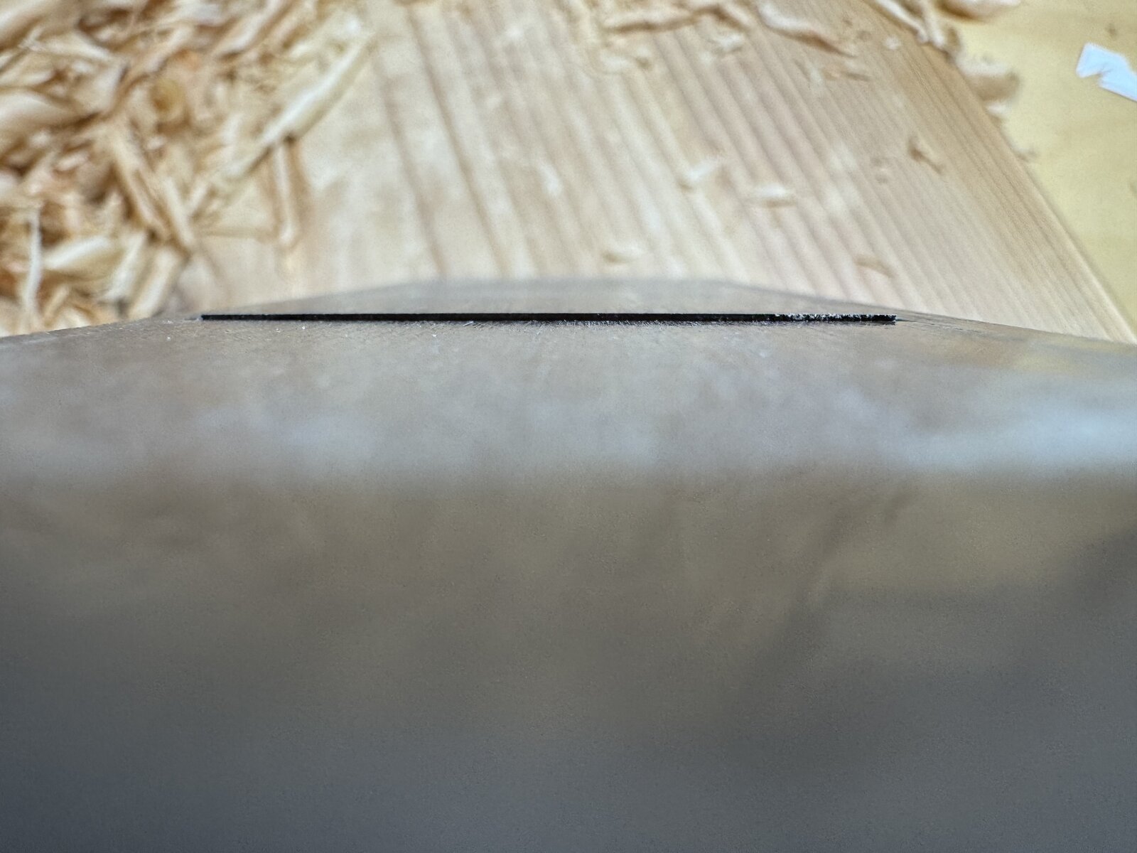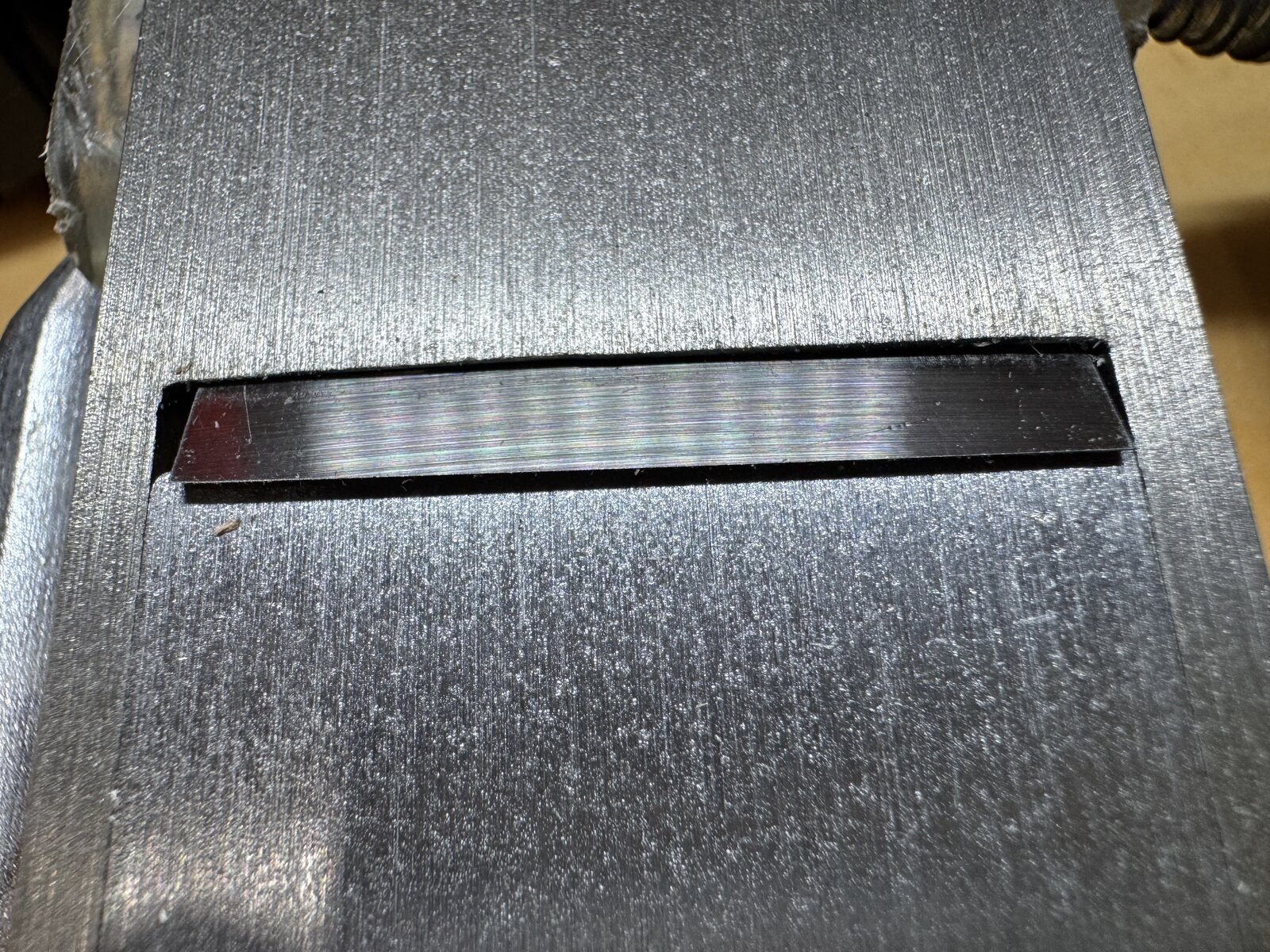 The photo is the edge where the blade slides down. The edge thickness is not parallel. Is this a normal design? I am new to a block plane usage. I would appreciate to have an advice.
