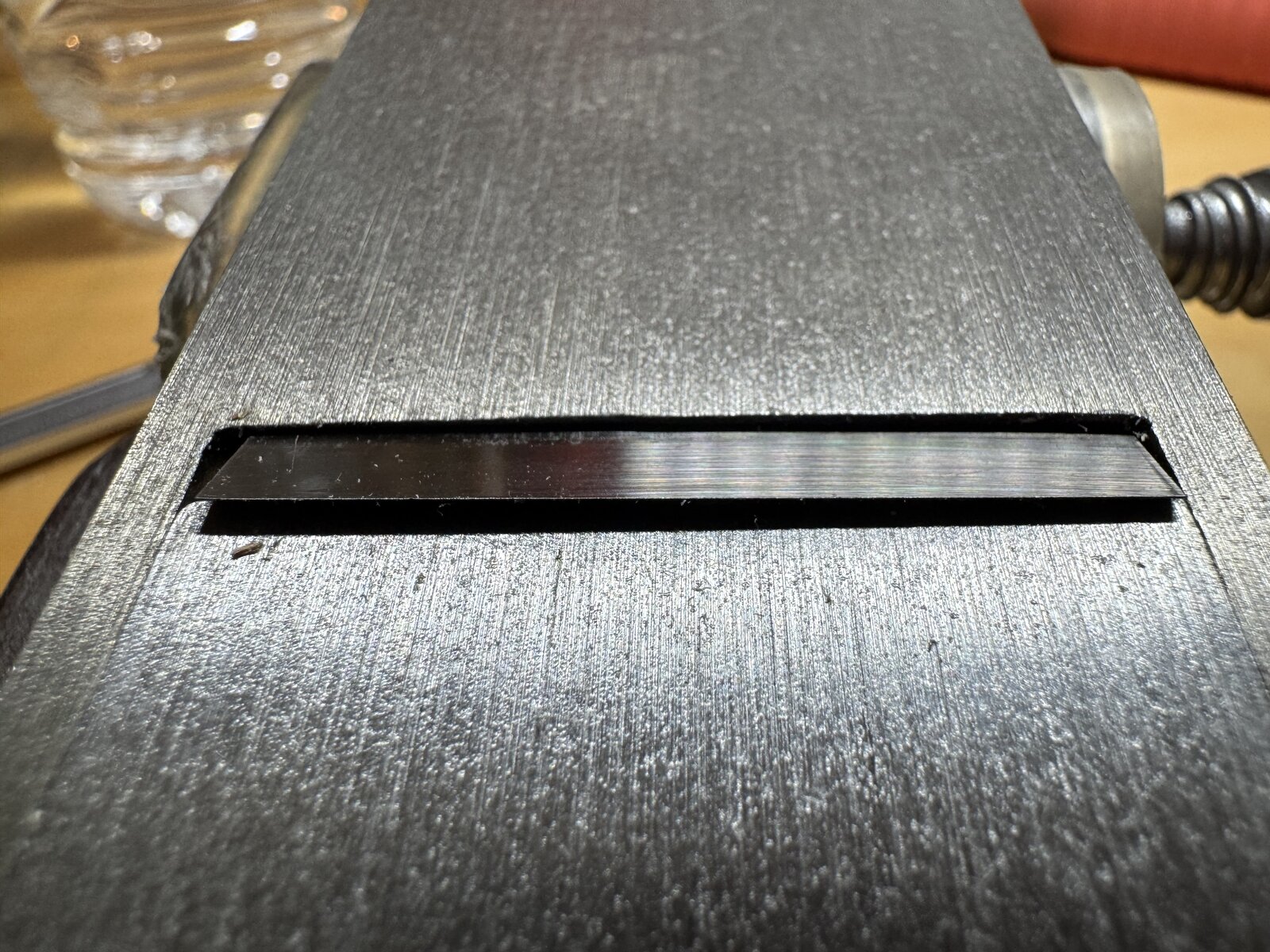 I bought a 6-¼ in Bailey block plane and found that the blade doesn’t come out evenly.