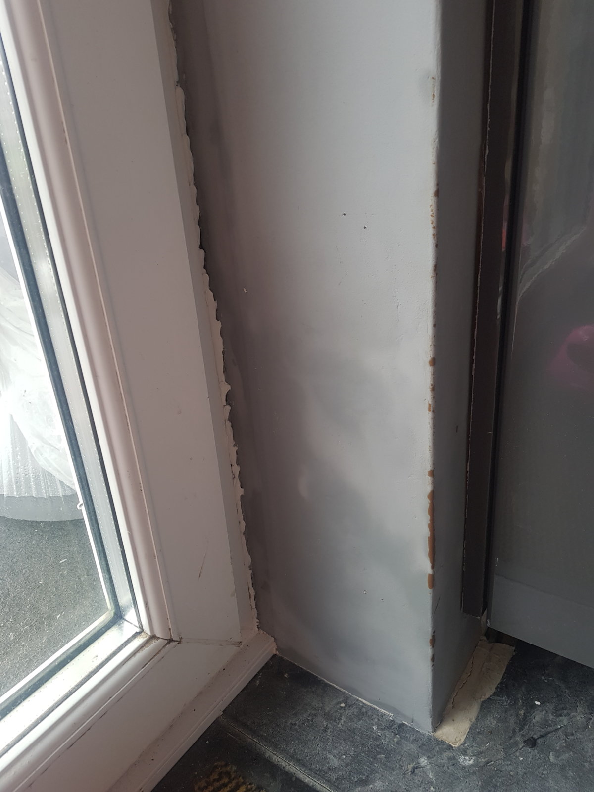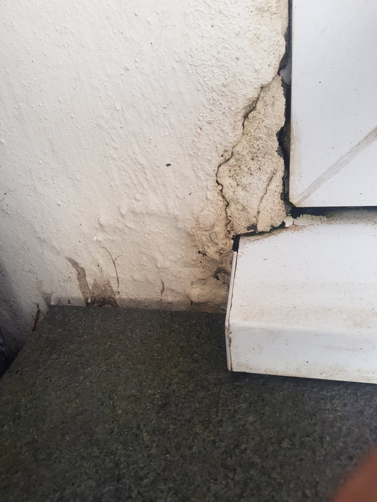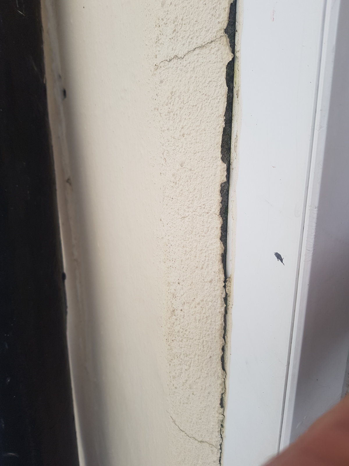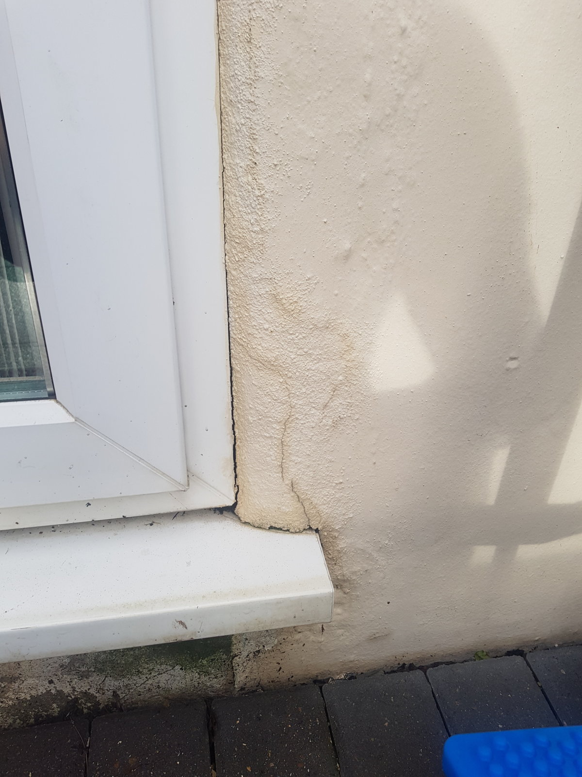 Hi, I have blown render mainly around the back PVC door and its making the internal wall damp. How can i repair this in these conditions as I think I can't do any repair render work whilst it is so wet, but I need to stop the water coming in. Is there a temporary fix I can do?