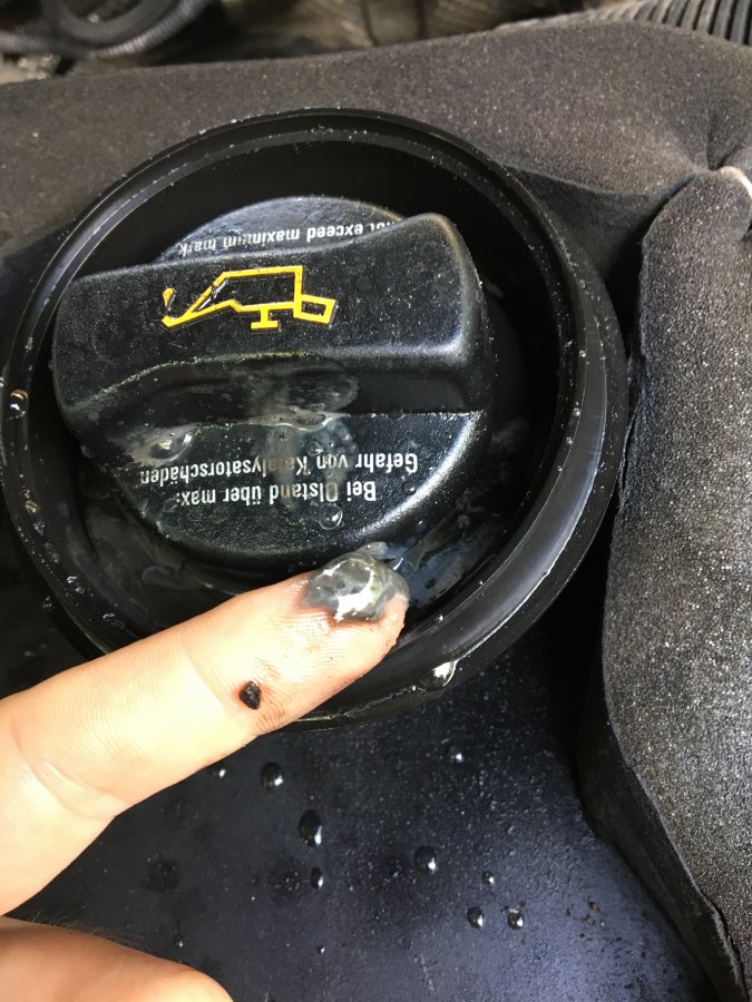 There was also water, oil and a greyish gunk around the filler cap on the engine.
