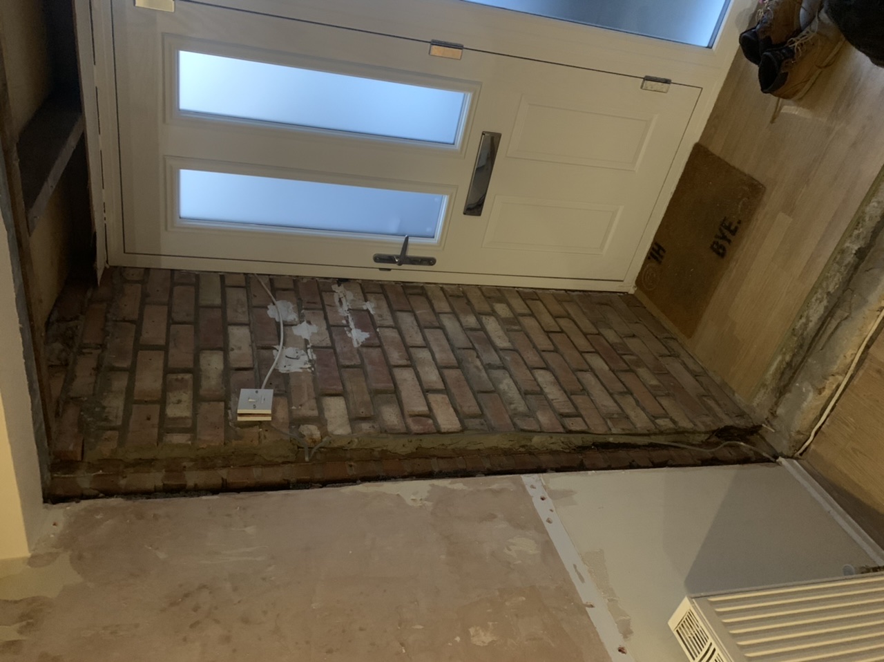 In the process of renovating the hallway and porch area, ripped out the poorly constructed internal wall and door, will be replacing wall and fitting external grade door so no building regs to worry out. (Was thinking of having open plan but too much of a fuss and already small so can’t lose anymore space with insulation etc).