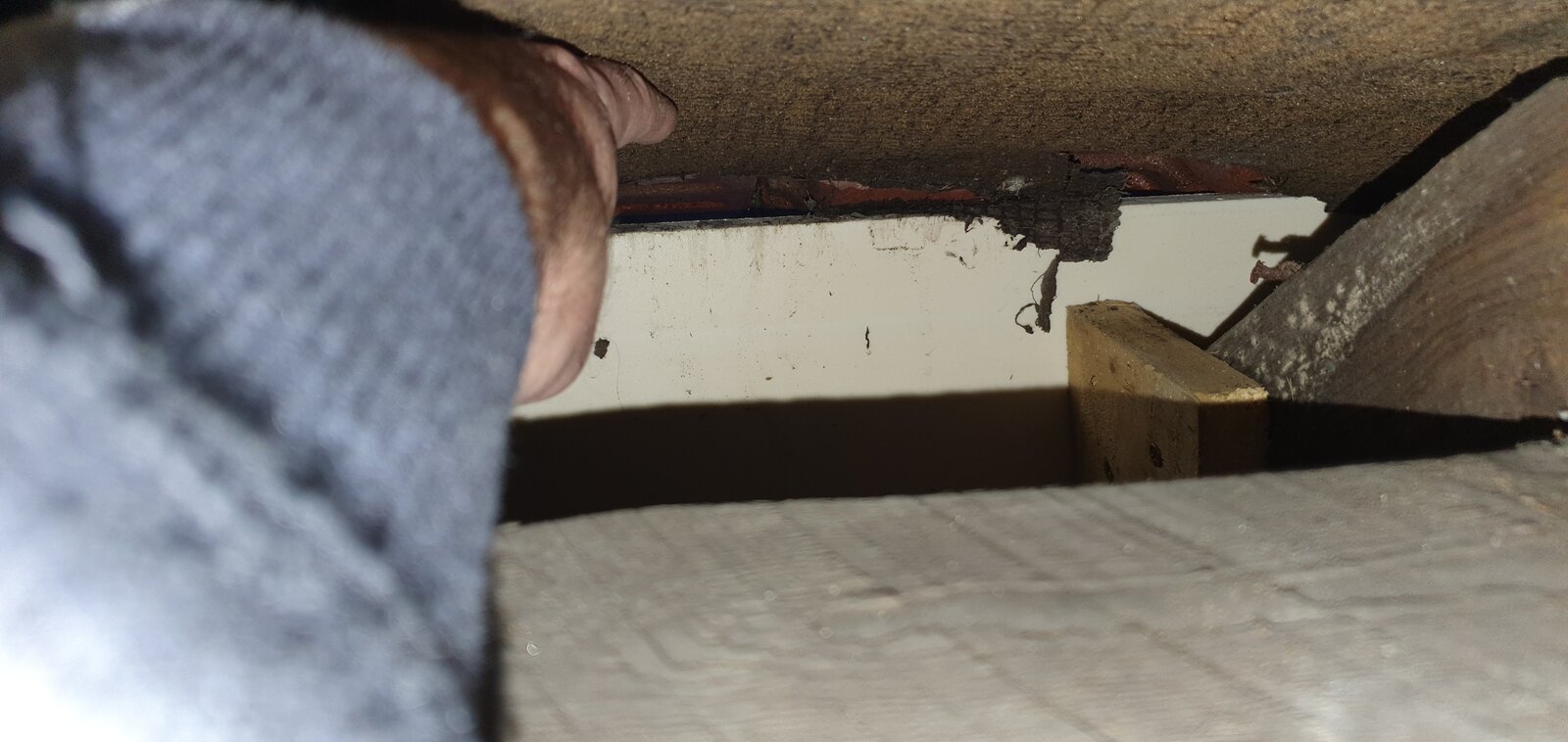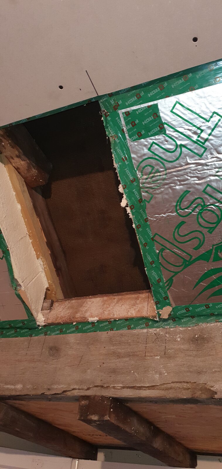 A section of the sofit board runs above the flat roof timber board inside the loft and it seems that water has collected on the sofit and driped onto the newly replaced flat roof timber which in turn has leaked and soaled the roofing timbers.