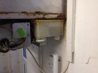 I have a comby boiler Glow worm 40 energy saver and the condensation container does not evacuate the water. As you can see in the picture the right container fills up and once is full the left overflow container fills up and needs to be emptied regularly. I have tried to take it out but the screws are rusty. I assume it is just dirt but I have sticked a hose through the hole in the right container to suck the water excess and