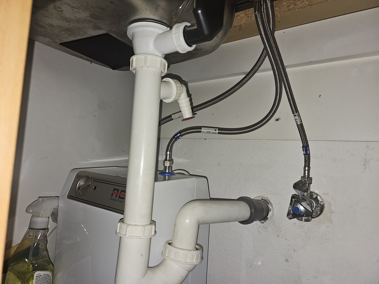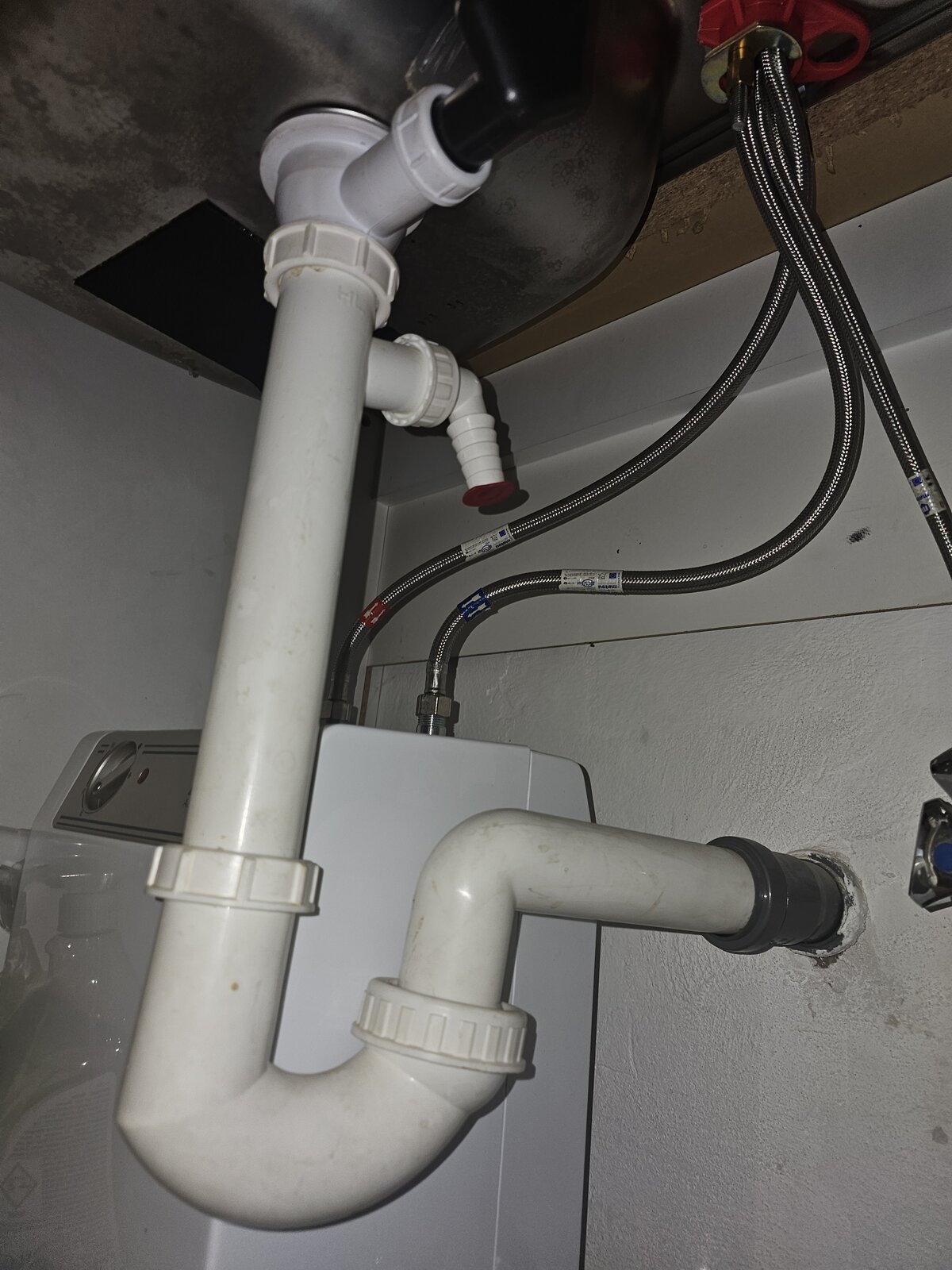 The hose can reach the sink, but it's not an ideal connection.If the hose will reach to the sink ,there may be a connection point on the pipework there ?