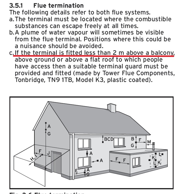 Andy, as has been said... The Manufacturer and Gas Safe are the regulations that rule over all else!