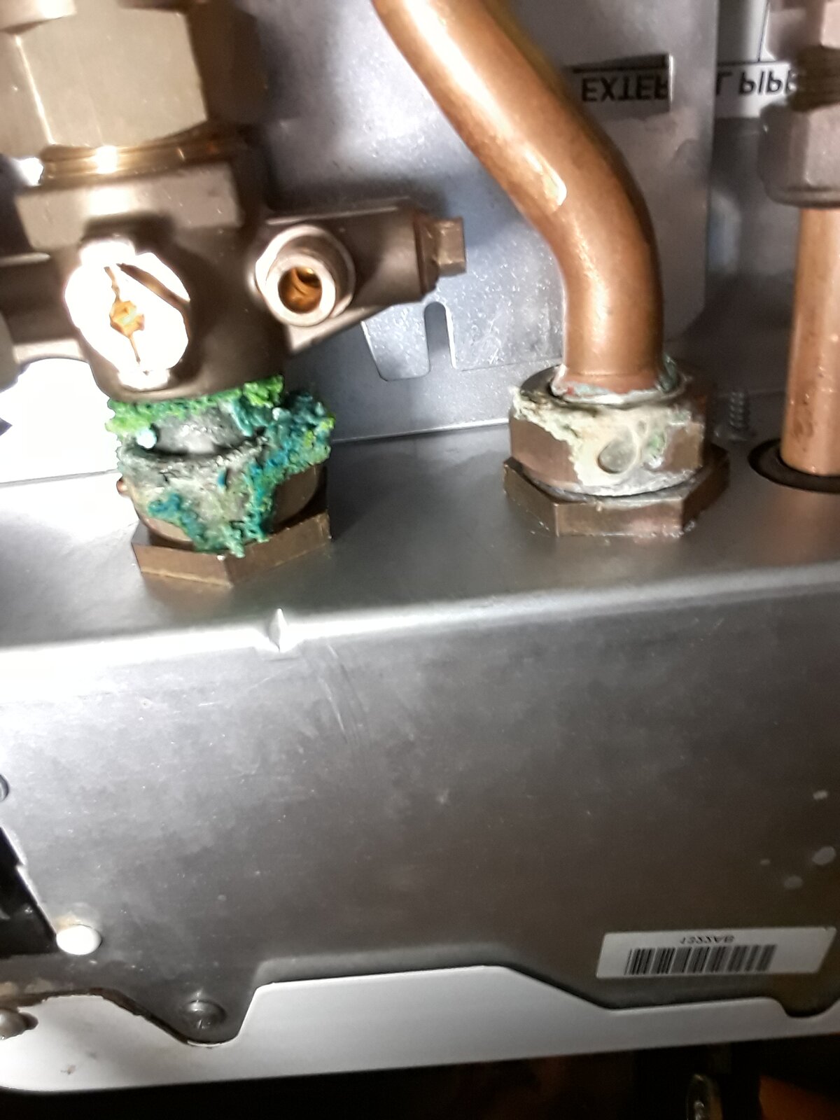 My boiler is a glow worm flexicom 30cx. Where the pipes enter the boiler at the bottom it looks like at some point the pipes were leaking, please see image attached. Our gas service engineer said they have probably sealed themselves, what do the experts on here think.