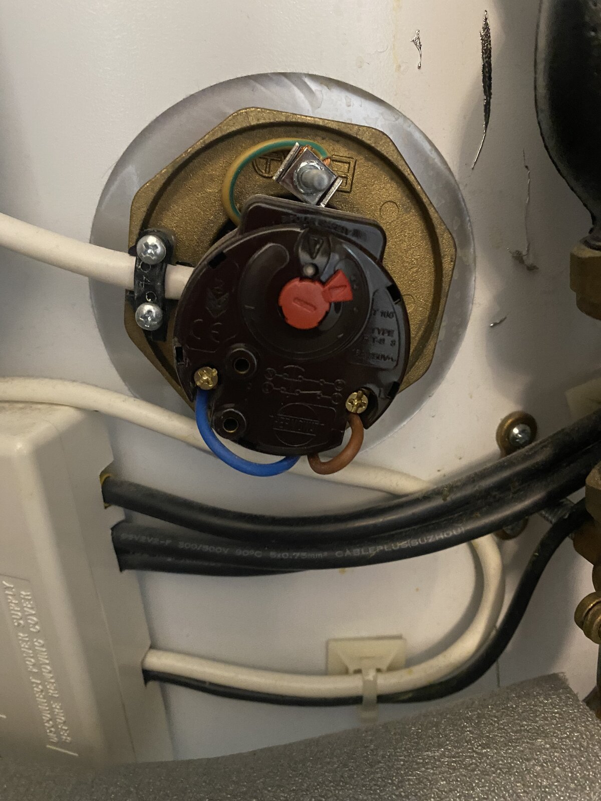Thanks danfre. I have removed the cap and I can’t see a temperature dial. There is one red thing which looks adjustable but doesn’t have any indications of temperature units on it?You have set the cylinder stat for the boiler. Turn off electric supply for immersion, remove white cap and adjust temperature dial