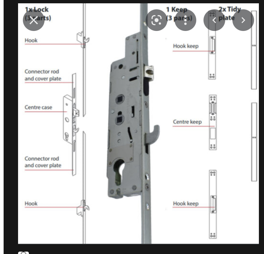 I’m not quite sure what parts you want but try looking up up UPVC door lock mechanisms and you might find the names of the parts you want. Here’s a couple i found doing a Google search.