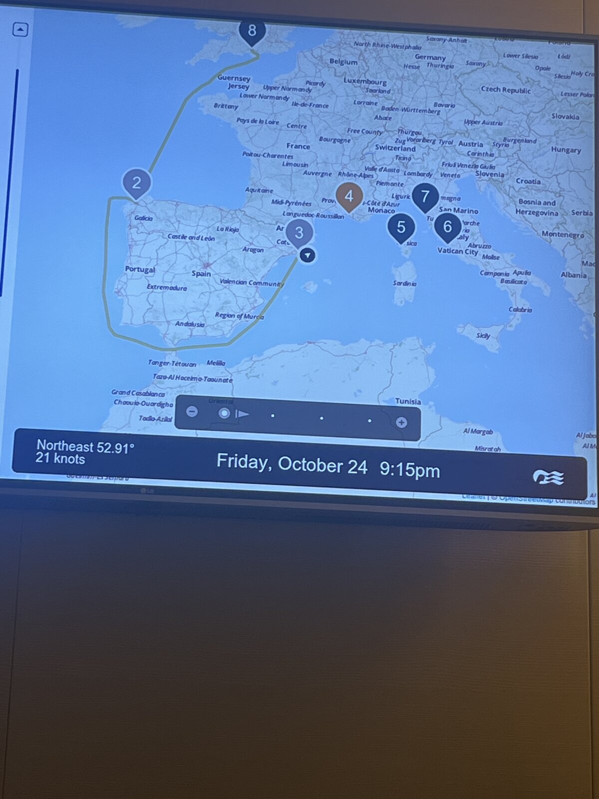 OMG you haven't moved, have you broke down or summatShips log at 9.15 pm So far so good on a steady heading towards Marseille. I have plotted the course and sent it to the captain to follow which I think is a better route.