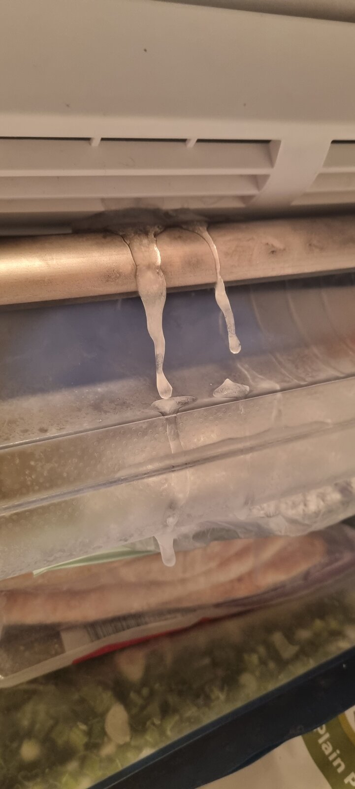 I have the above freezer. Had it since years. However just noticed that the No Frost System at the top has like an icicle coming out of the vent. It's leaked over (and froze) onto the draw cover too.