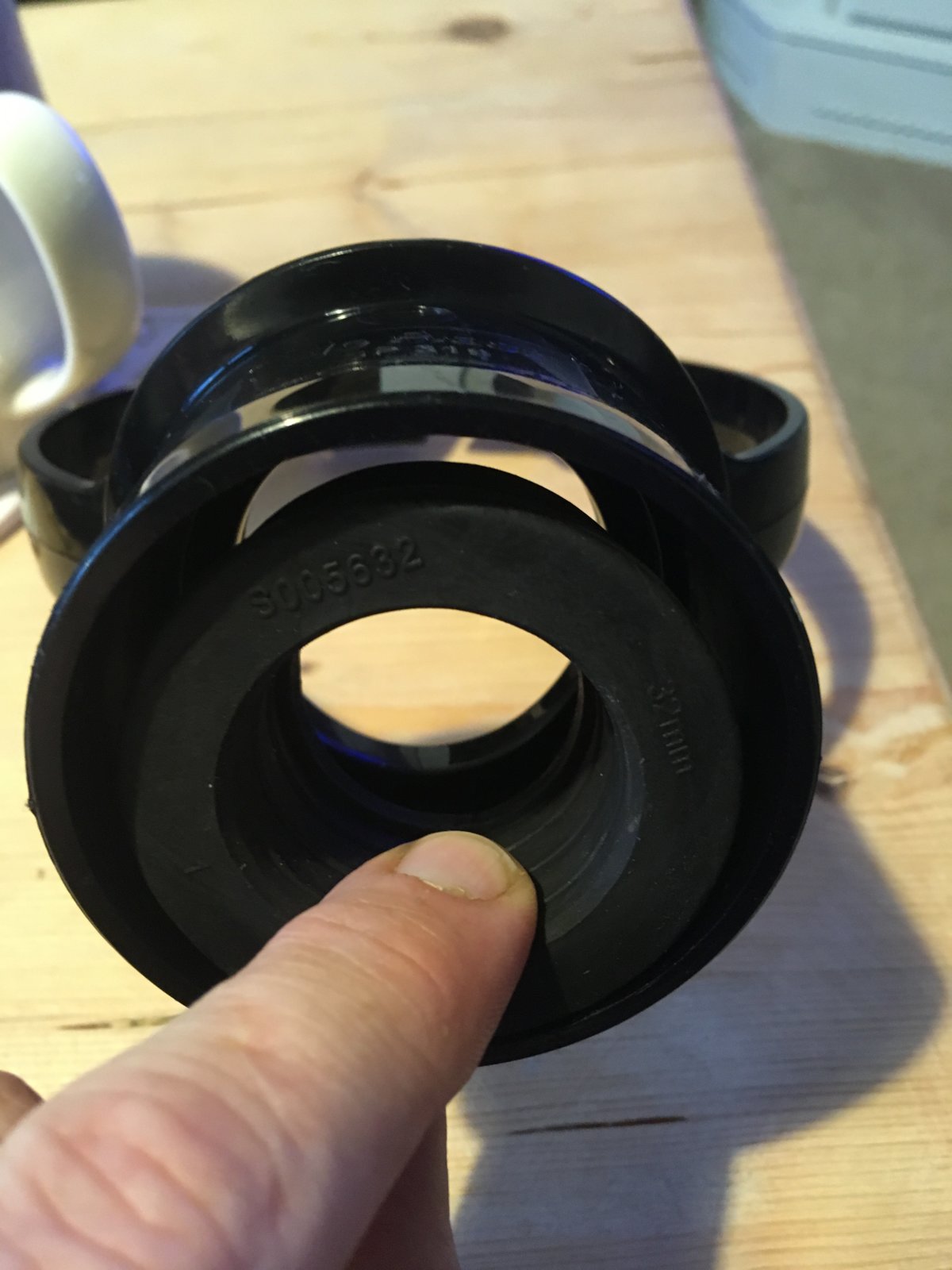 The issue I have got is that the rubber adaptor is to small to fit in the outer edge of the opening, and when I fit it into the opening where it fits into the soil pipe, the 32mm pipe won’t go through it with all the fairy liquid in our kitchen? Have I got the wrong adaptor?? Should it fit on the outer edge of the boss? I’ll try and post pictures of what I mean if that will help. Thanks in advance!!