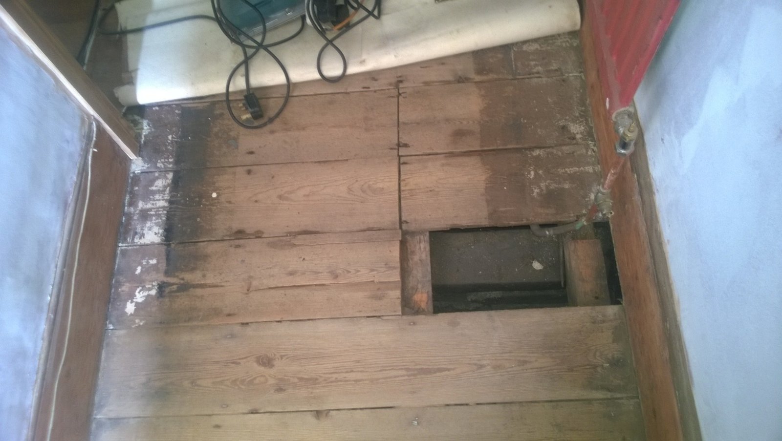 It seems when the central heating was put in they cut the floor boards down the centre of the hallway and covered them with laminate Now I want to clean up and oil the old boards but they look like open heart surgery.
