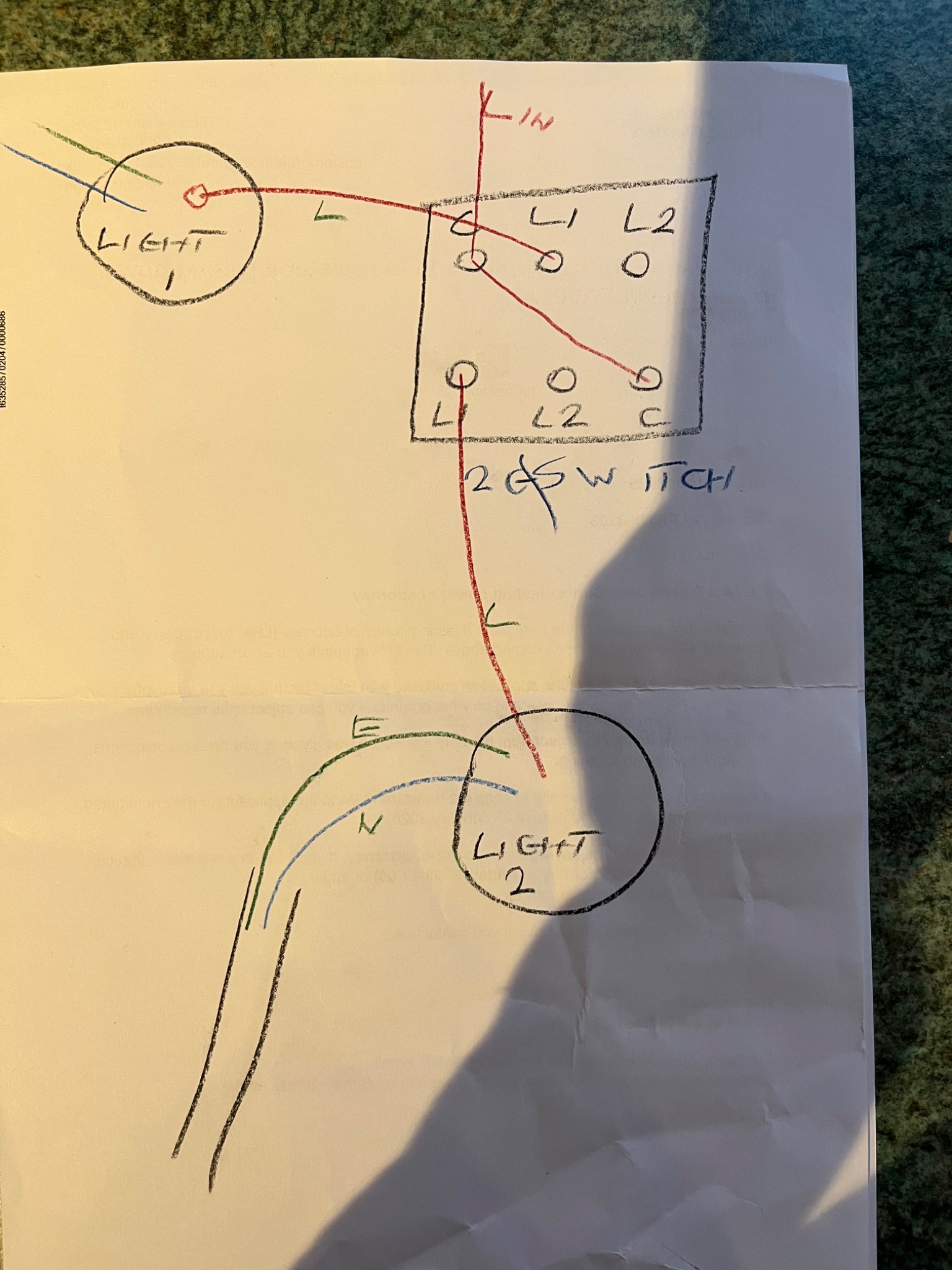The neutral and earth for light 2 are from an unknown source buried in the wall