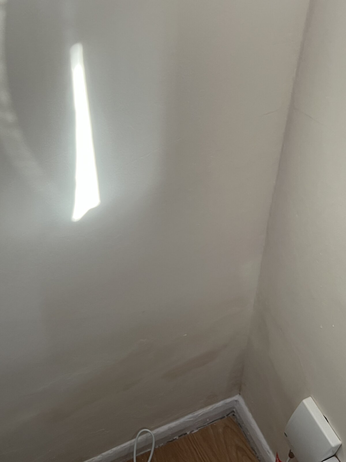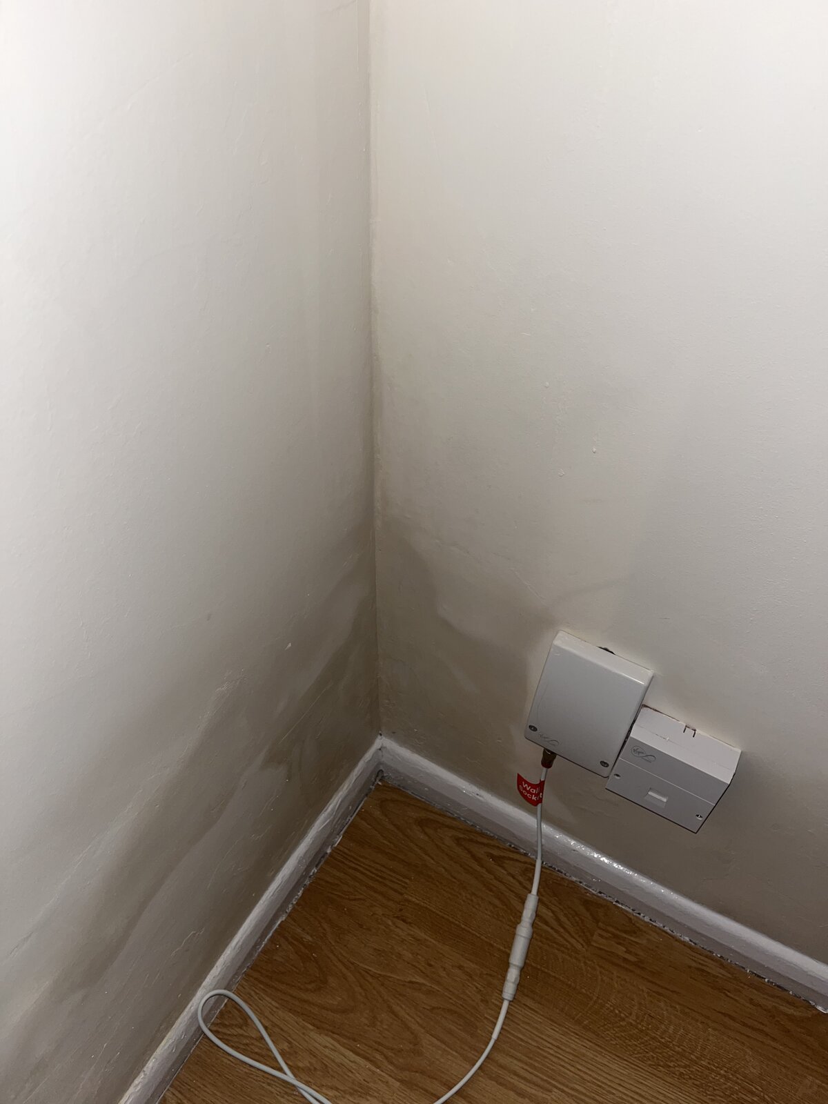 Recently moved into a new property and discovered that two corners in the living room are wet to the touch right at the bottom corner, this is on the wall that connects us the our neighbours. In the spare bedroom which is directly above one of the corners we also have a wet corner directly above.