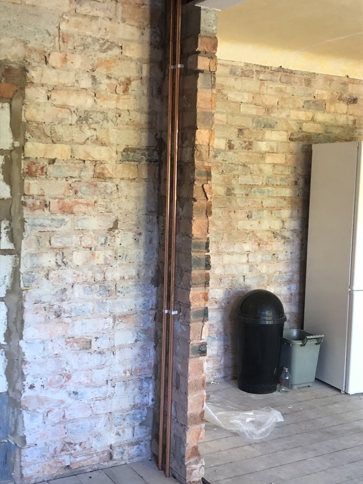Need to box these pipes in and board before plasterer. Planning on using 1x2 cls each side of the pipes. My question is that I will be left with the exposed edge of timber then the brick ends of the pillar. Should I put the end batten flush with the brick level or slightly proud to allow more depth for board on the end of pillar? The room is being float and set plastered but dunno if it would be easier to board this bit around pillar?