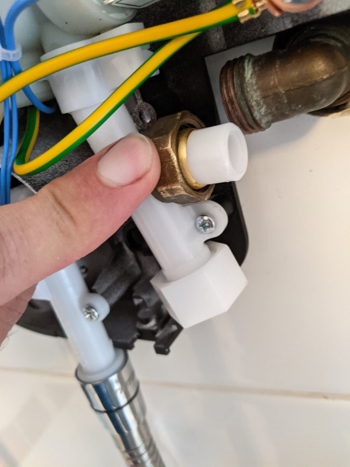 Hi, 4th time I've replaced my Triton shower and never any issues. However this time was getting very little water and low pressure, loosened the nut and looks like the olive has slipped too far over and therefore I guess the plastic inlet is too far into the elbow bend.