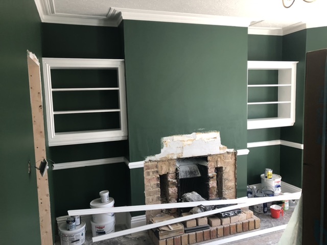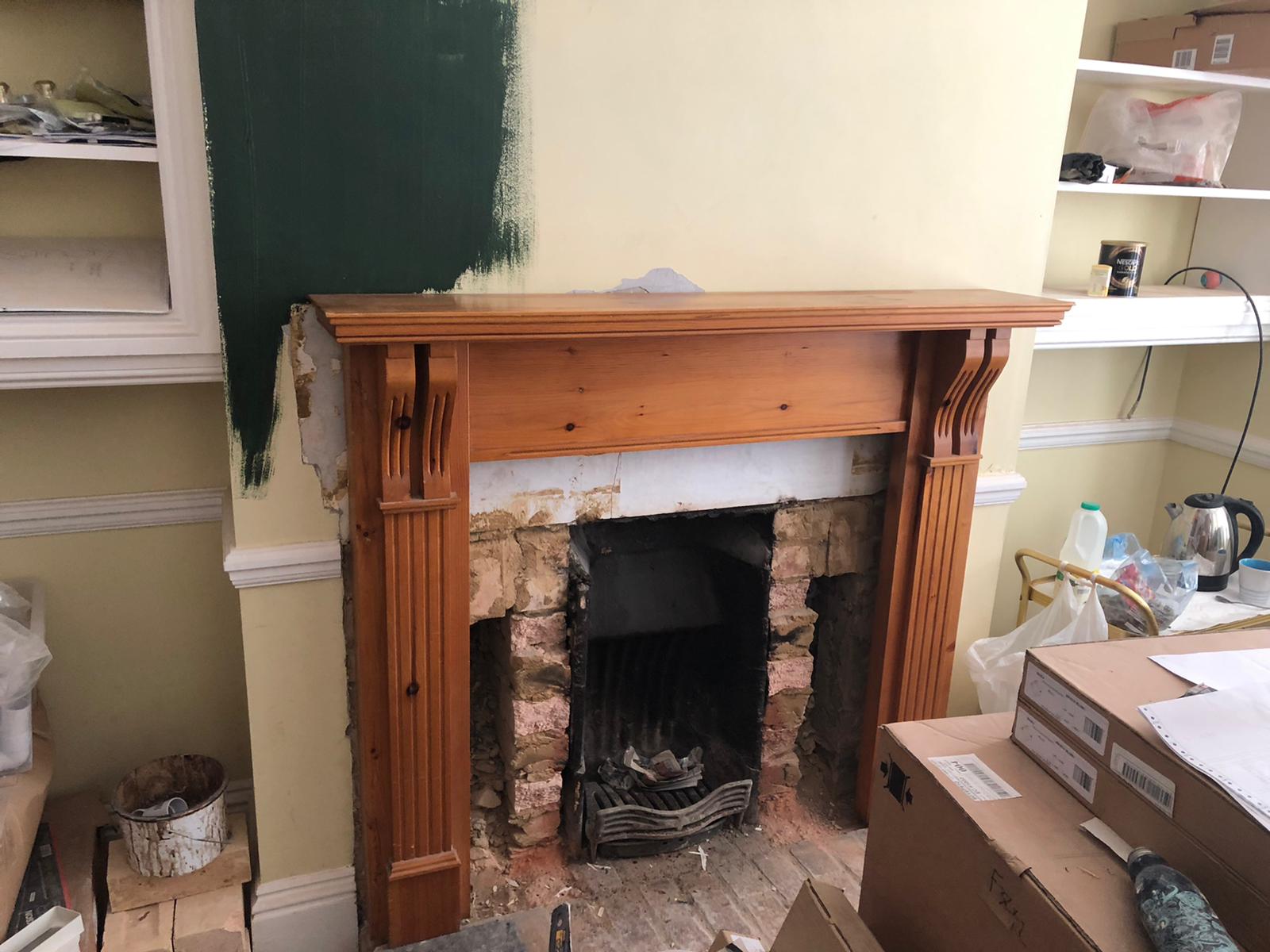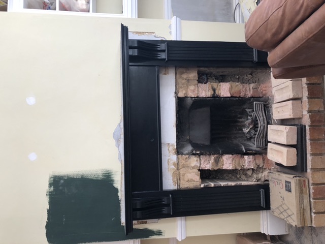 Currently looks like this. The Mantle is not secured yet and cast iron insert not placed.