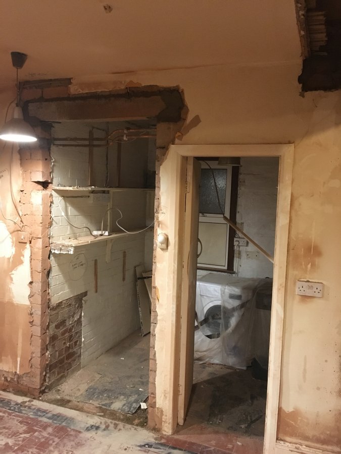I wanted to create another door opening so that I have 2 doors. The openings are now being held up by a 20cm brick pillar which is only single skin. The wall is also only single skin.