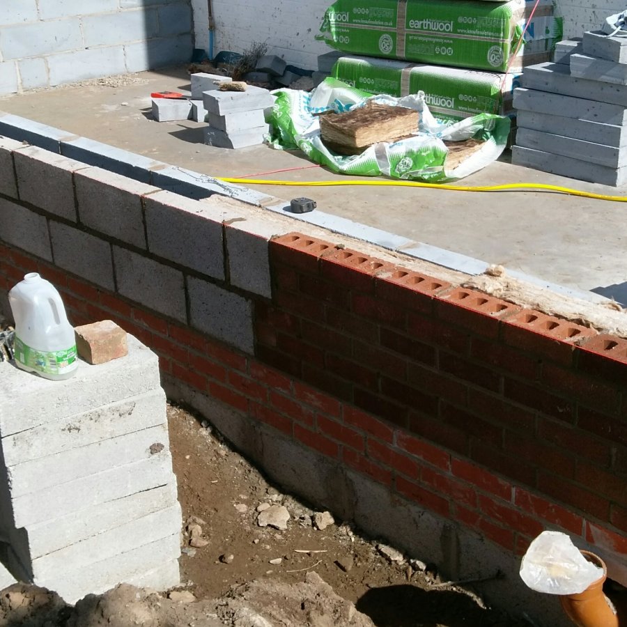 keying/coursing in bricks to blocks on the same wall, which I planned to do with a half bond on the block, but I got the brick bond wrong so I need to do quarter block bond on the join, otherwise the brick perp join lines up with the block perp above.
