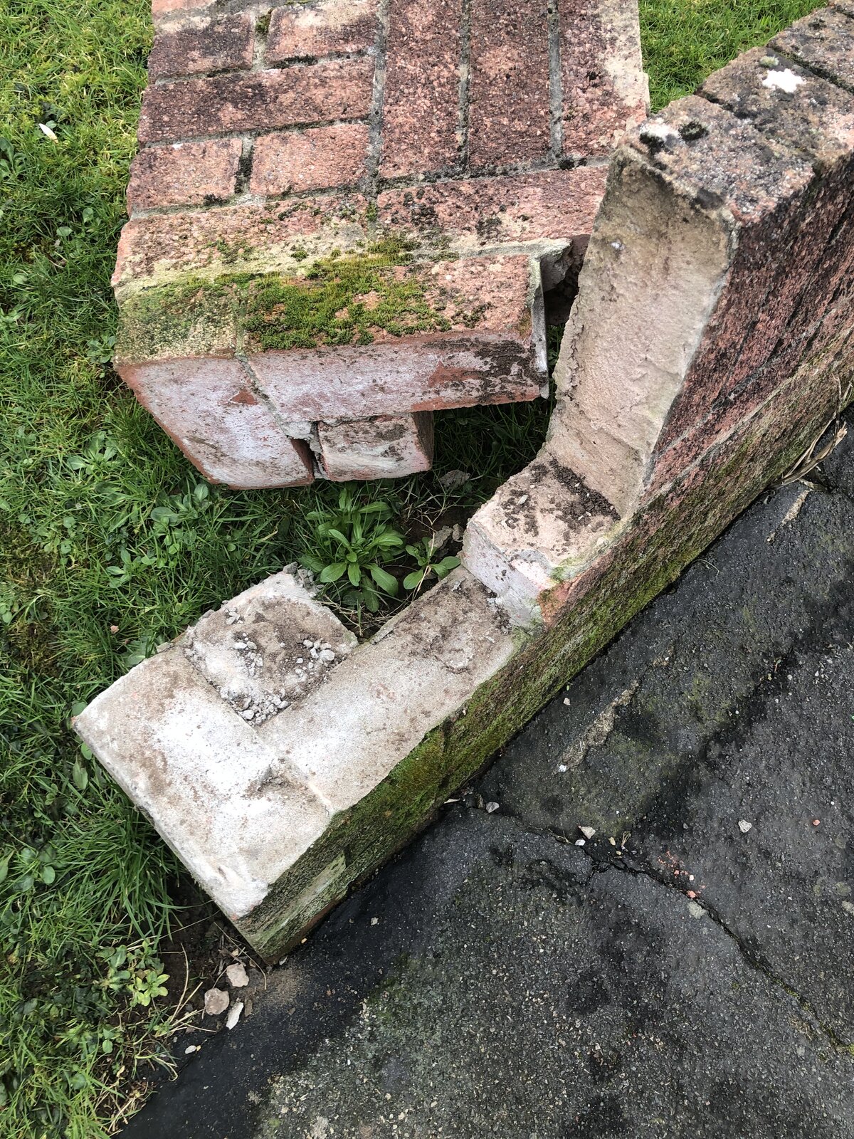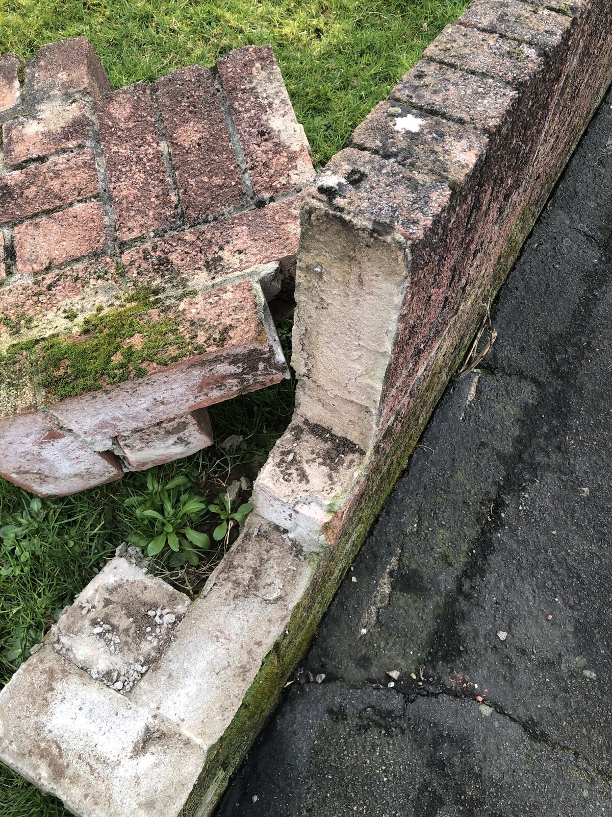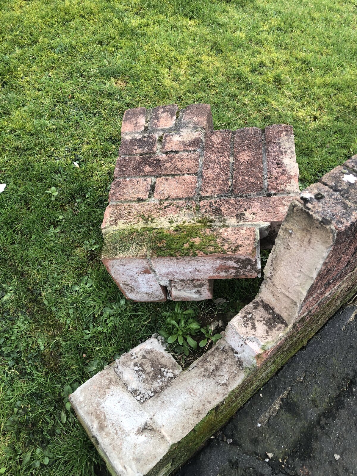 A bit of the wall was knocked down by a car. Is it ok to put back the whole bit back with new mortar?