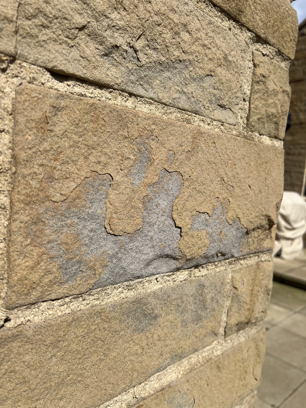 I have a late 1970s house, the brickwork I thought was honey coloured sandstone, however; it is flaking and wearing away to reveal a grey type uniform looking brick underneath. I have had cosmetic brickwork businesses out to restore or give advice to how to fix and prevent further damage but no one seems to have any answers or be able to help remedy the problem.